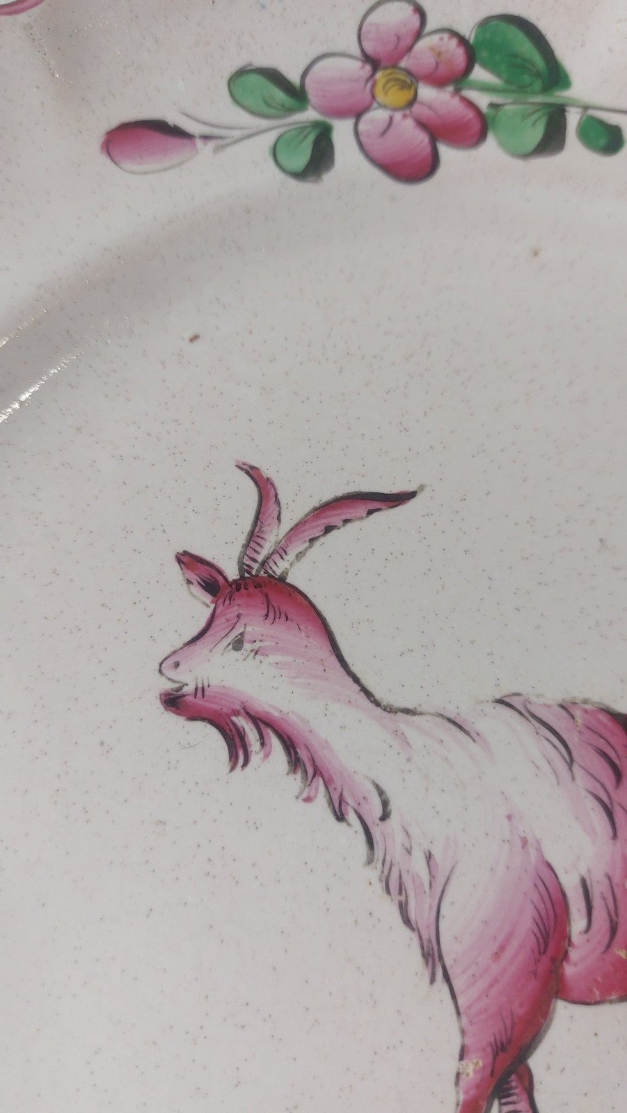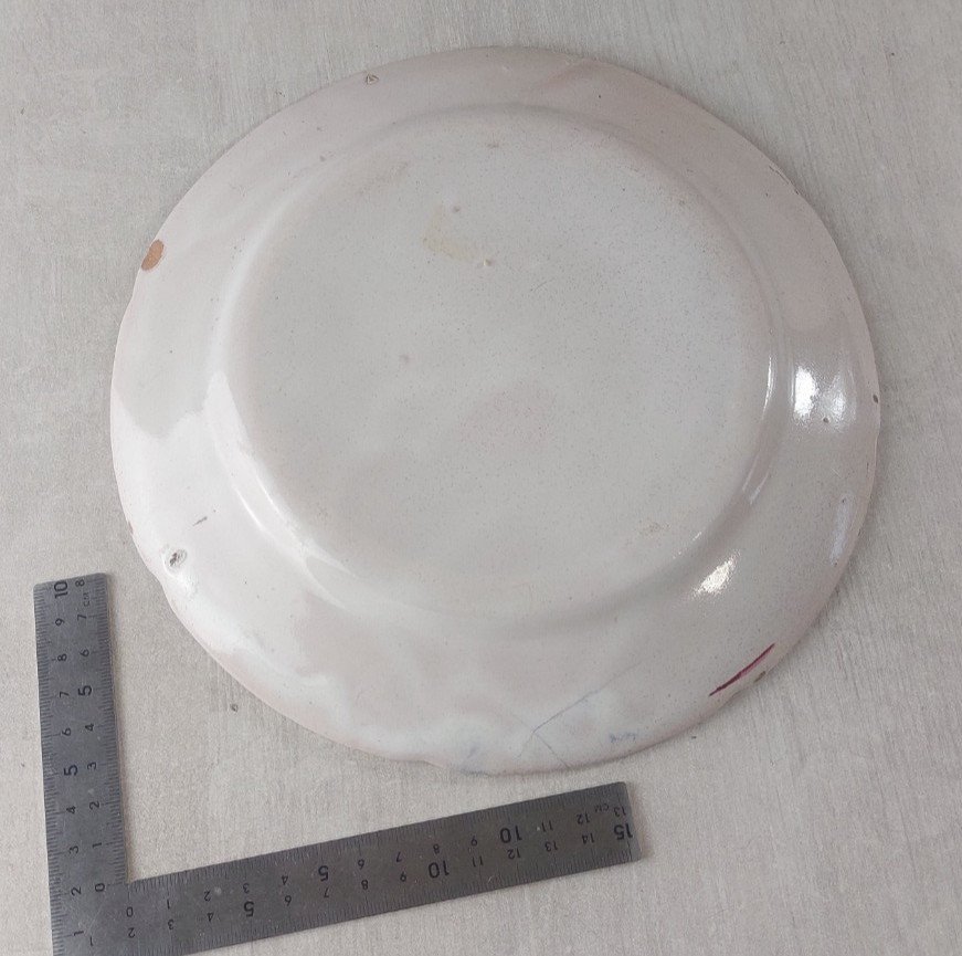 Rare antique plate, polychrome decoration in small fire, featuring a goat on a terrace, Les Islettes / Eastern earthenware in good condition, with a slight crack and a chip on the back edge of the unmarked plate, diameter 23.5 cm, see photos. Check out my other items! Reduced shipping costs for combined purchase. Country of origin: France.