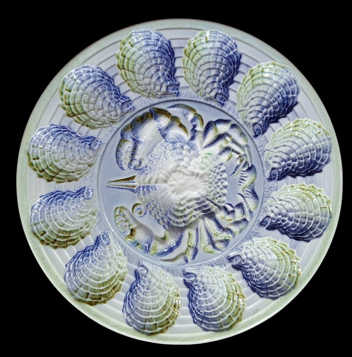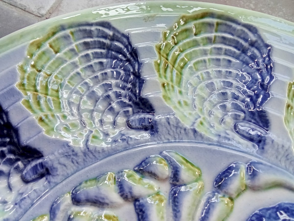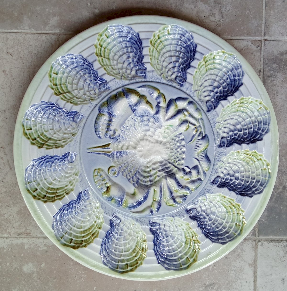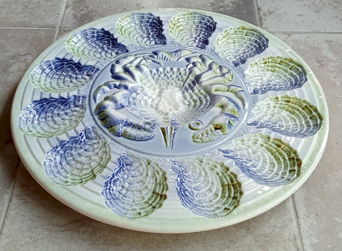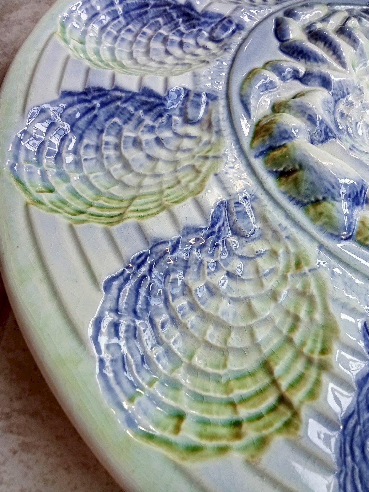 Old Large Plate For Oysters Crustaceans Barbotine Sarreguemines France Very beautiful colors Perfect condition Diameter 38 cm Country of manufacture: France