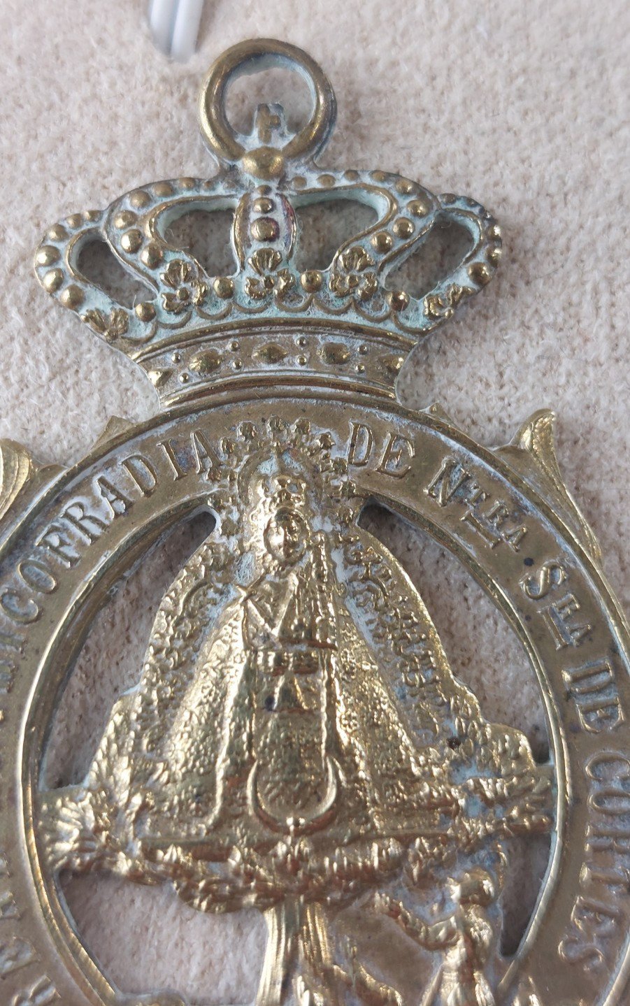 Old religious medal, in gilded metal, Our Lady of Cortes in good condition marked Real Archicofradia de Nuestra Senora de Cortes dimensions 5.5 cm X 3.7 cm see photos Check my other items! Discount on shipping costs for combined purchases Condition: Used Item that has been used. any potential imperfections. Type: Christianity Subtype: Medal, Pendant Material: Metal