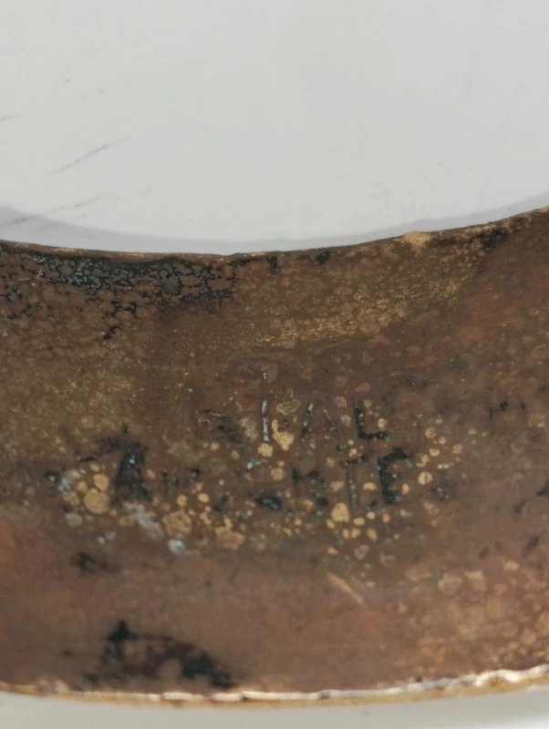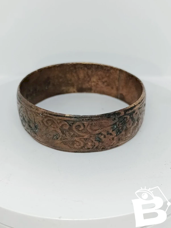 old silver-plated metal bracelet with floral decoration in good condition, age to be determined, patina and oxidation from time, indication "silver-plated metal" inside, diameter 6.8cm, height 2cm
