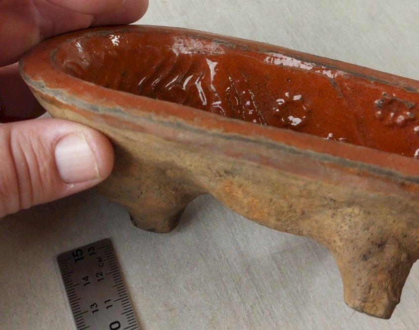 Rare antique small miniature mold, doll/baby, glazed terracotta, Soufflenheim Alsace in good condition, no cracks or chips but some wear/scratches on the edges, missing one foot not signed, length 22.5 cm, height 6.3 cm, weight 480 g, see photos. Check out my other items! Discount on shipping costs for combined purchases. Condition: Used. Item has been used. Any imperfections. Number of pieces: 1. Type: mold. Country of origin: France. Material: Terracotta.