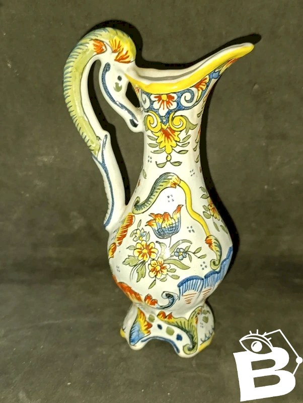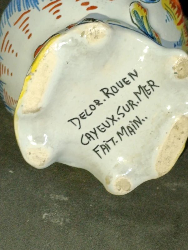 old small pitcher decor rouen handmade in good condition height 20cm note a small chip at the base