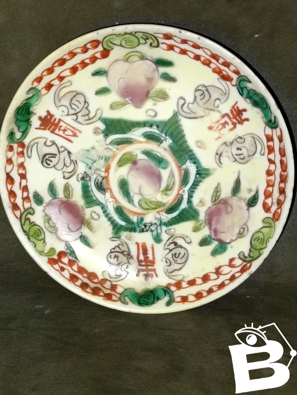old small porcelain dish with Asian floral decoration in good condition, period to be defined, bears a stamp on the back, note a small chip on the rim and some wear on the decoration (see photos) diameter 13 cm