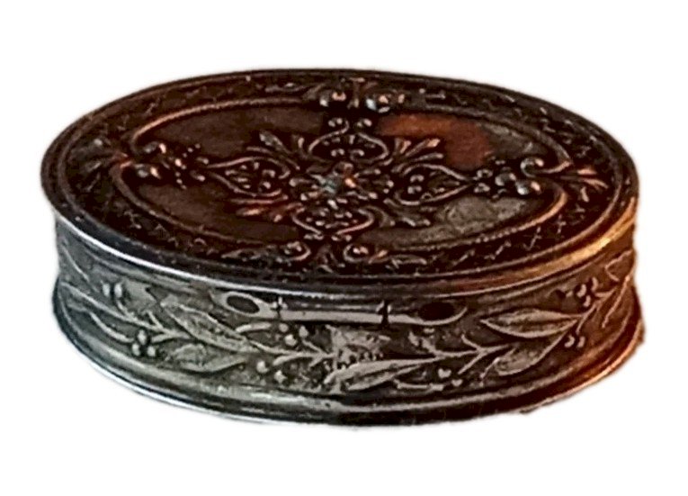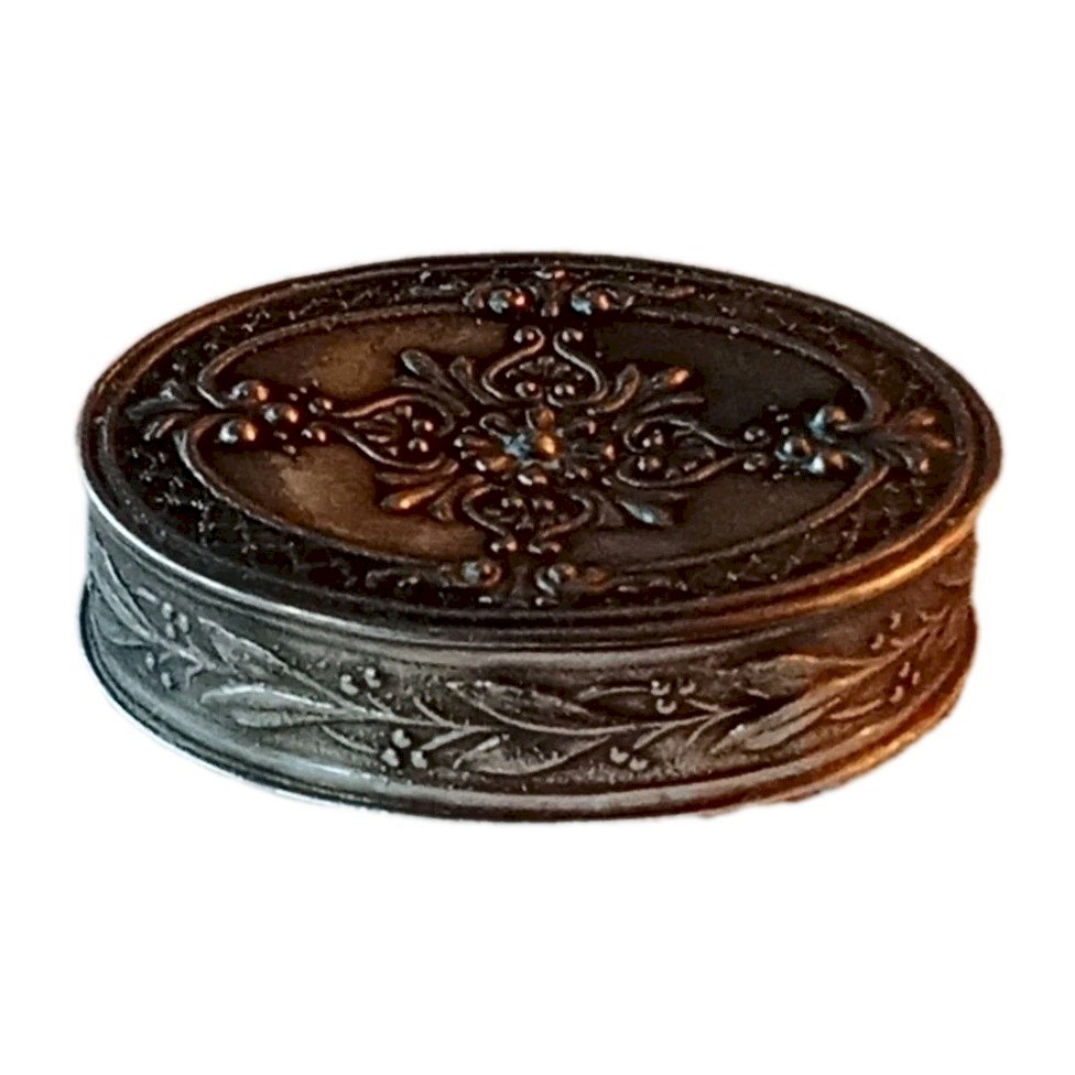 Antique small pillbox Solid silver 12 grams Pretty decoration Tested with acid Height 0.9 cm Dimensions 2.9 cm x 3.7 cm Sub-type: Box Authenticity: Original Brand: French manufacture Type: Showcase item, Decorative Origin: France Material: Solid silver