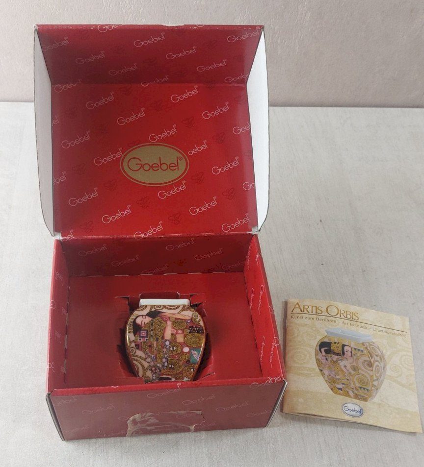 Old small vase, Artis Orbis Gustav Klimt design, ceramic by Goebel, in very good condition, no cracks or chips, some wear on the box marked Goebel, vase height 6.7 cm, see photos. Check out my other items! Reduced shipping costs for combined purchases. Country of origin: Germany Brand: Goebel