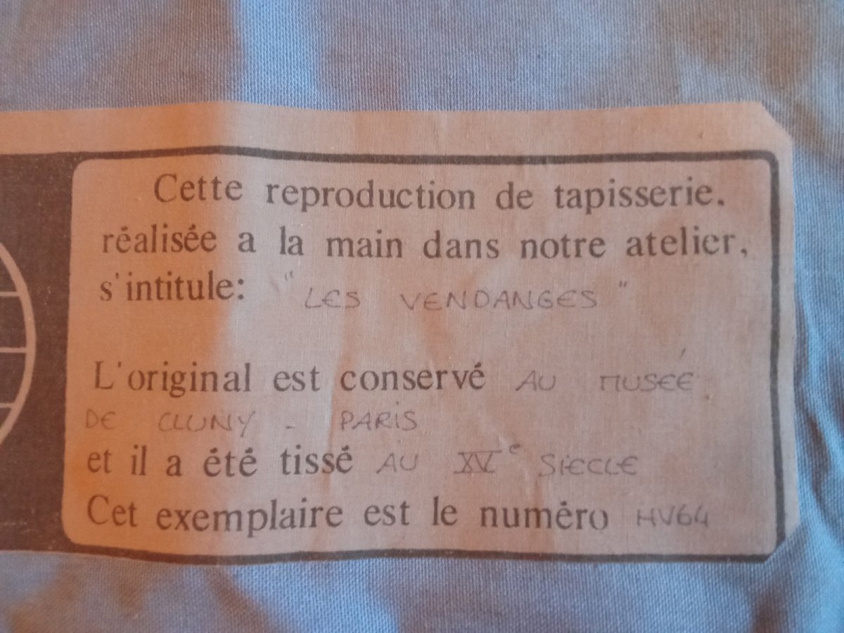 Old tapestry The grape harvest André Demay Georges Boitard Numbered Good condition Beautiful piece Dimensions 113.5 cm x 169 cm Color: Multicolored Type: Tapestry Use: Clothing Origin: France