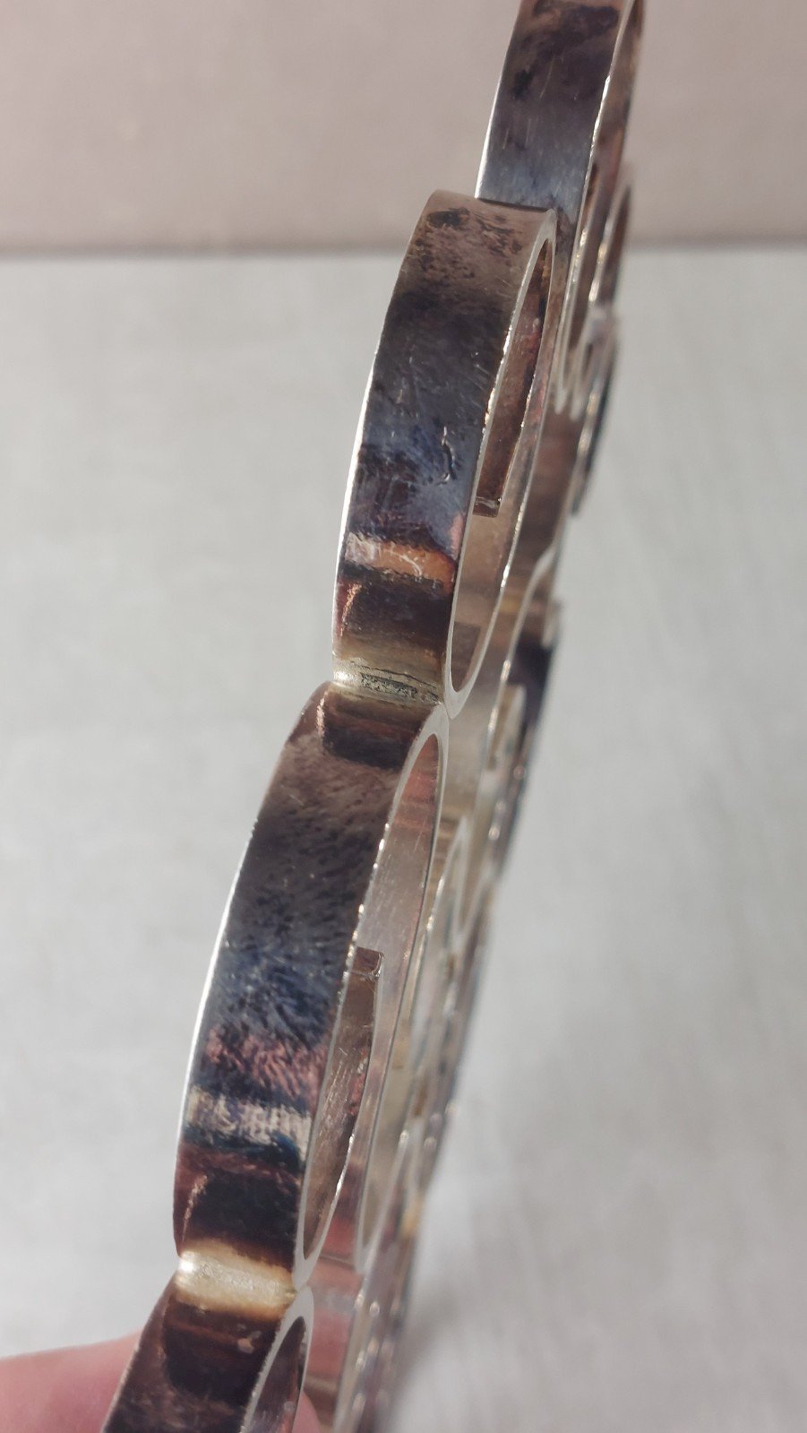 Old trivet, Christofle arabesque marked Gallia in good condition, dimensions 22 cm X 21 cm, see photos. Check my other items! Reduced shipping costs for combined purchases. Authenticity: Original Brand: Christofle Type: Tableware, Kitchen Period: 20th Century Design Country of origin: France Material: Silver-plated metal