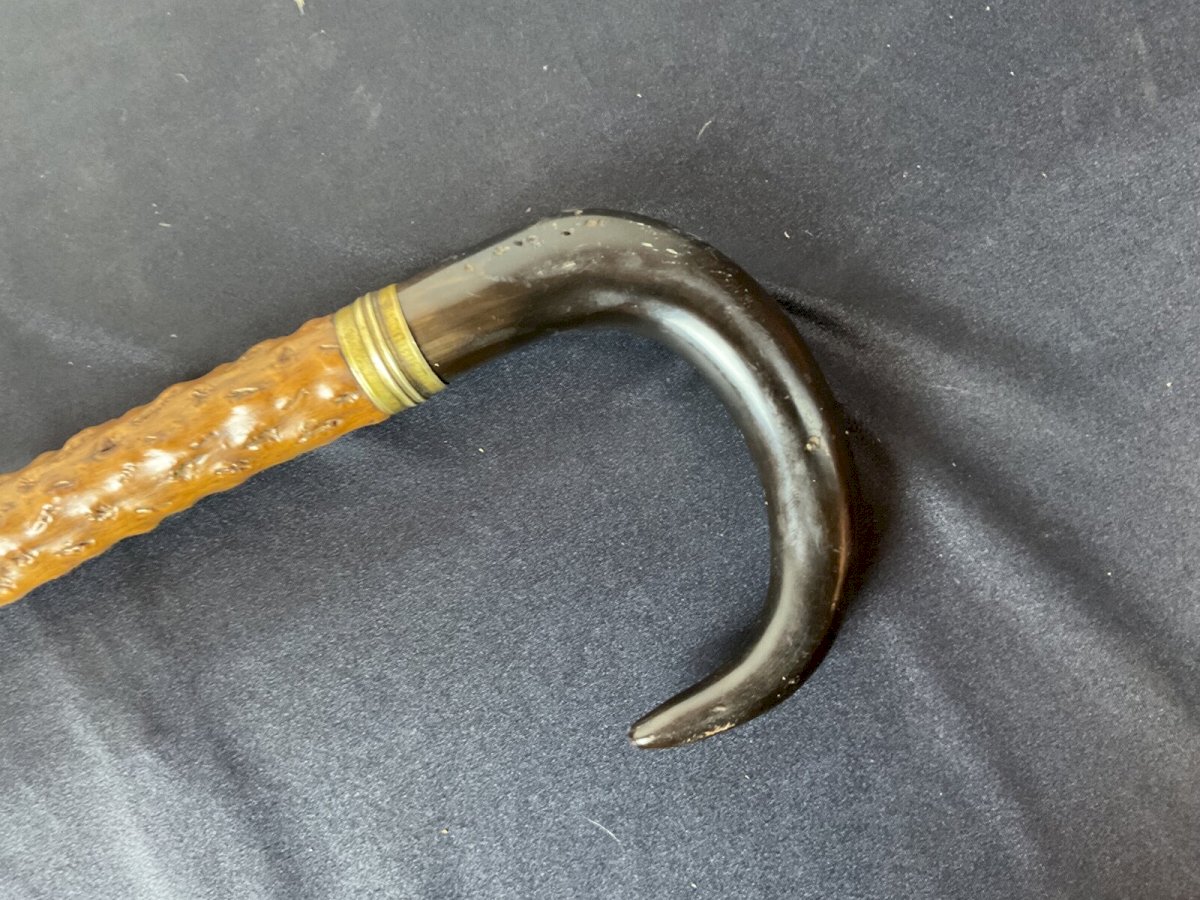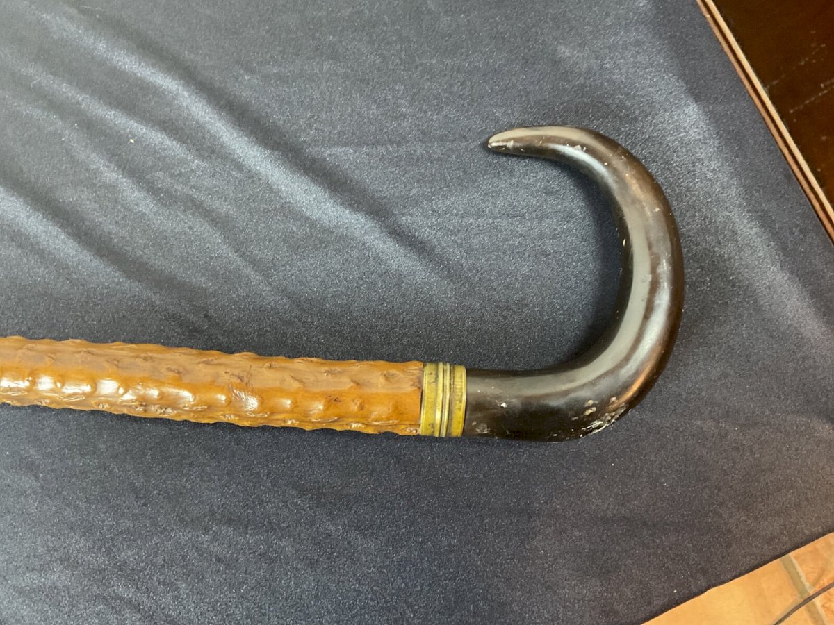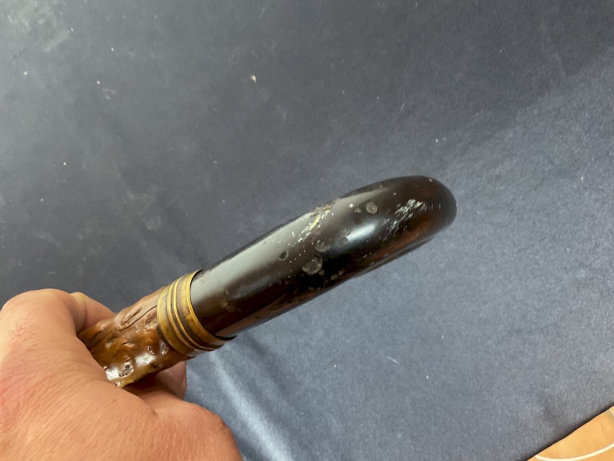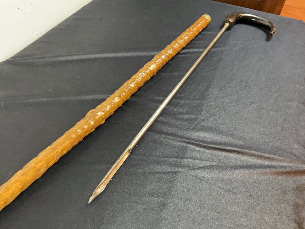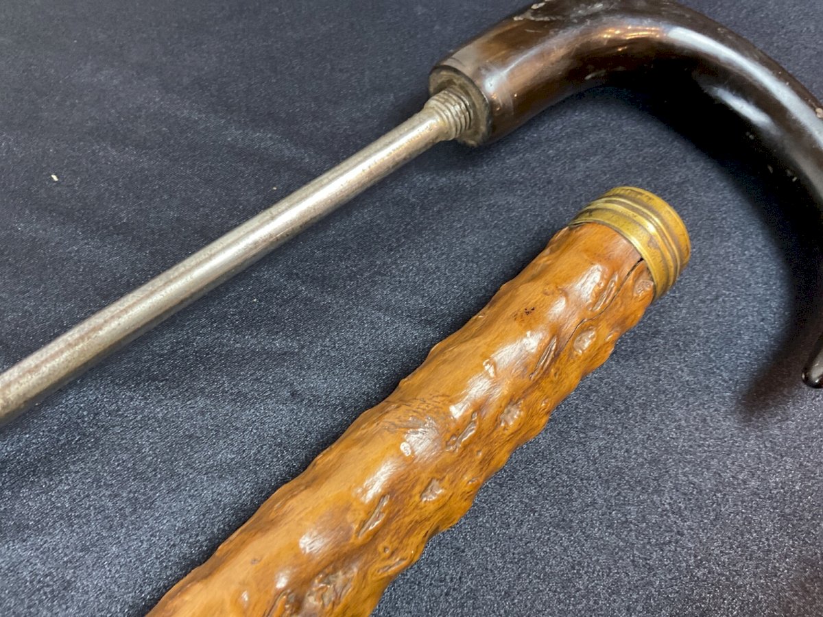 PROFESSIONAL CANE WITH SYSTEM Cane with system for probing trees The handle unscrews to reveal a spiral Slightly curved cane Length: 91.5 cm Authenticity: Original Type: Folk art object Origin: France Subtype: Cane Material: Wood Style: rustic