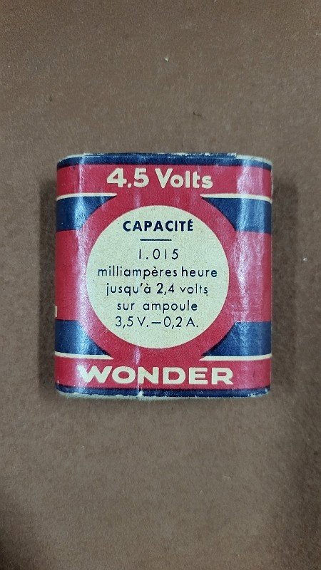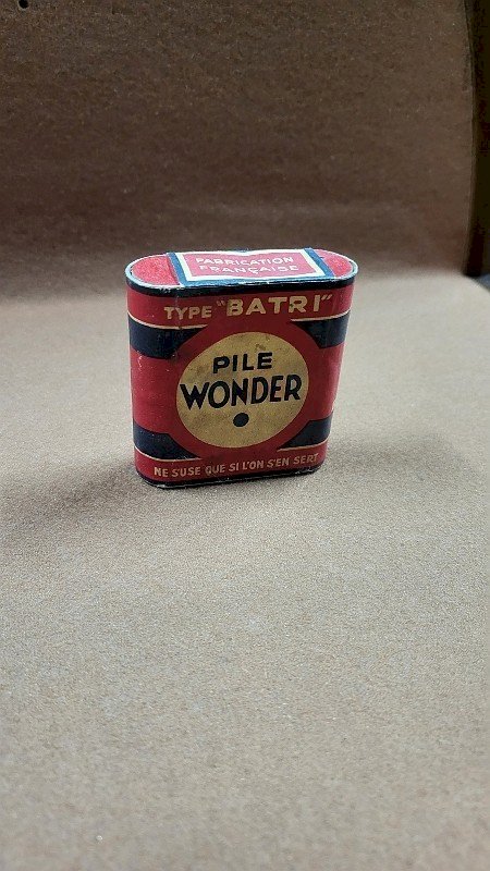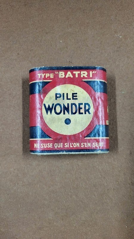 superb and vintage "Wonder" battery display box type "Batri," it is in very good condition measuring 6.2 cm wide, 6.7 cm high, and 2.1 cm thick. Condition: Used item showing possible imperfections. Country of origin: France.