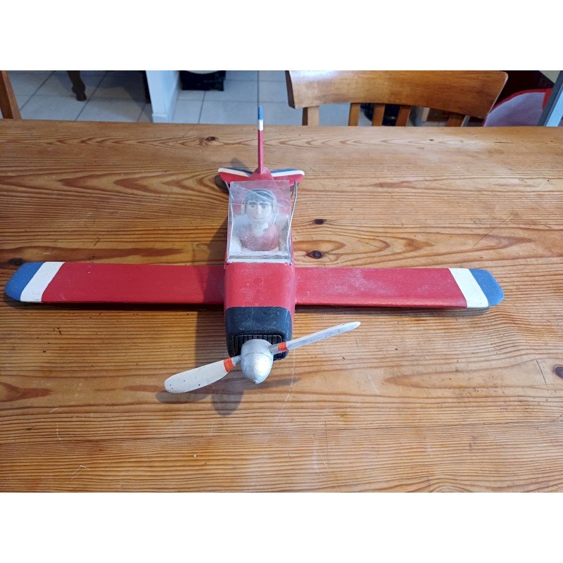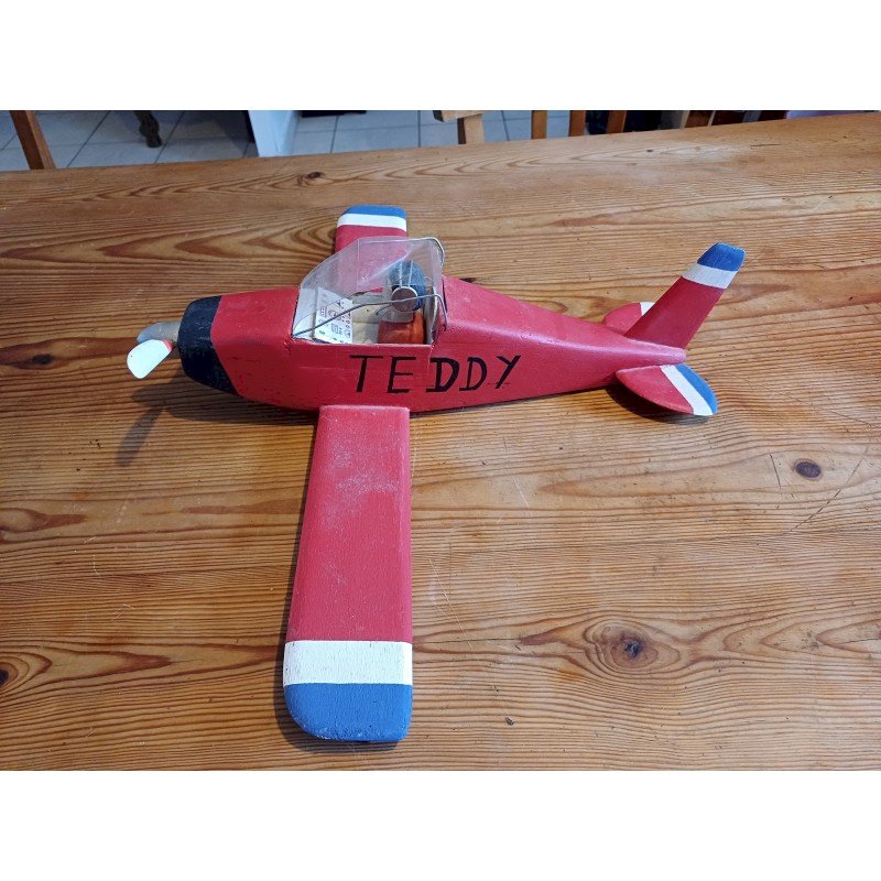 Old Wooden Toy Airplane, Height: 11 cm, Length and Width: 41 cm by 53 cm, Weight: 600 g, in good condition but missing the wheels.