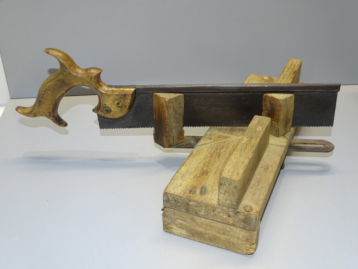 Old wooden cutting box with a brass graduated ruler at the front up to 30 and a wooden handle saw - presence of holes from use (see photos) - in its original found condition, in good shape - Ref. 42240725/87 - Box 35.1 x 9.8 cm - maximum width 23.8 cm - Saw length 40.6 cm width 6 cm - Weight 1.3 kg - SHIPPING via Mondial Relay OR Colissimo possible upon request - GUARANTEED very protective PACKAGING THANK YOU for CAREFULLY LOOKING at ALL the PHOTOS as THEY ARE AN INTEGRAL PART of the DESCRIPTION and ALLOW to SEE the ITEM AS BEST AS POSSIBLE - Condition: Used: Item that has been used. Item showing some superficial signs of wear, ...Used: Item that has been used. Item showing some superficial signs of wear, fully operational and functioning correctly. It may be a demonstration model or an item returned to the store after a short period of use. any imperfections. Type: CUTTING BOX AND SAW