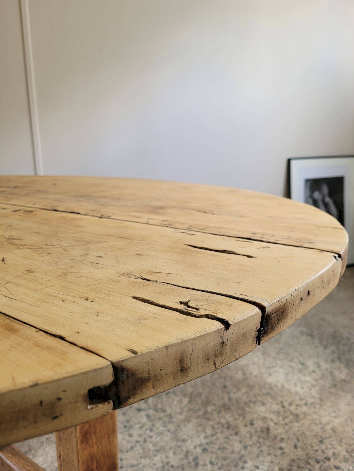 We love the light shade of the solid wood, the traces of time that give it all its charm, its shape... In generally good condition, with some signs of wear (see photos). Dimensions: 115 X 71 X 100 cm (L X H X D) Free pickup on site (14570 Clécy) or delivery to Caen and surrounding areas (€20). L: 115 W: 100 H: 71