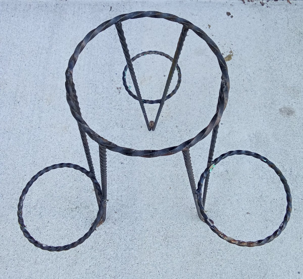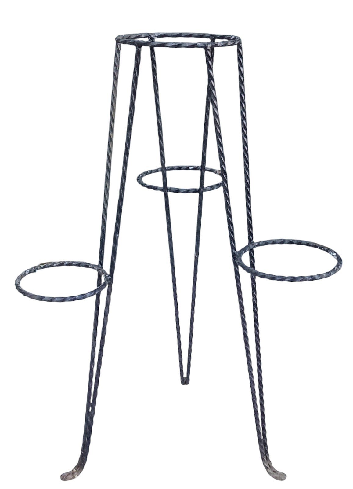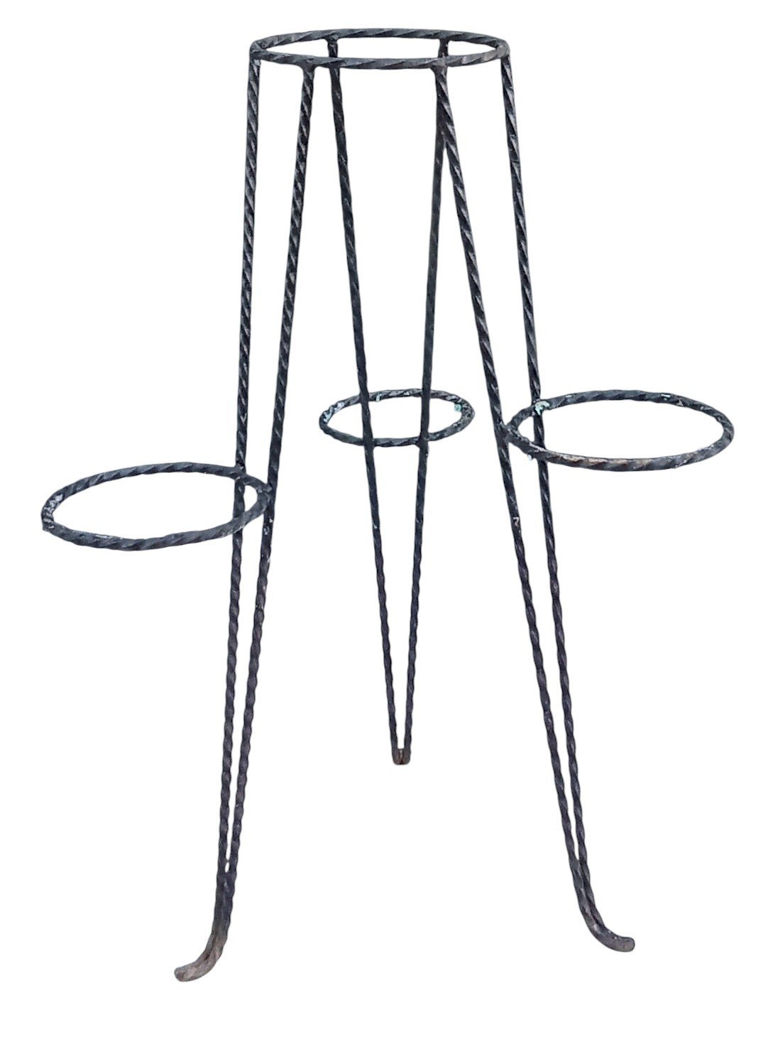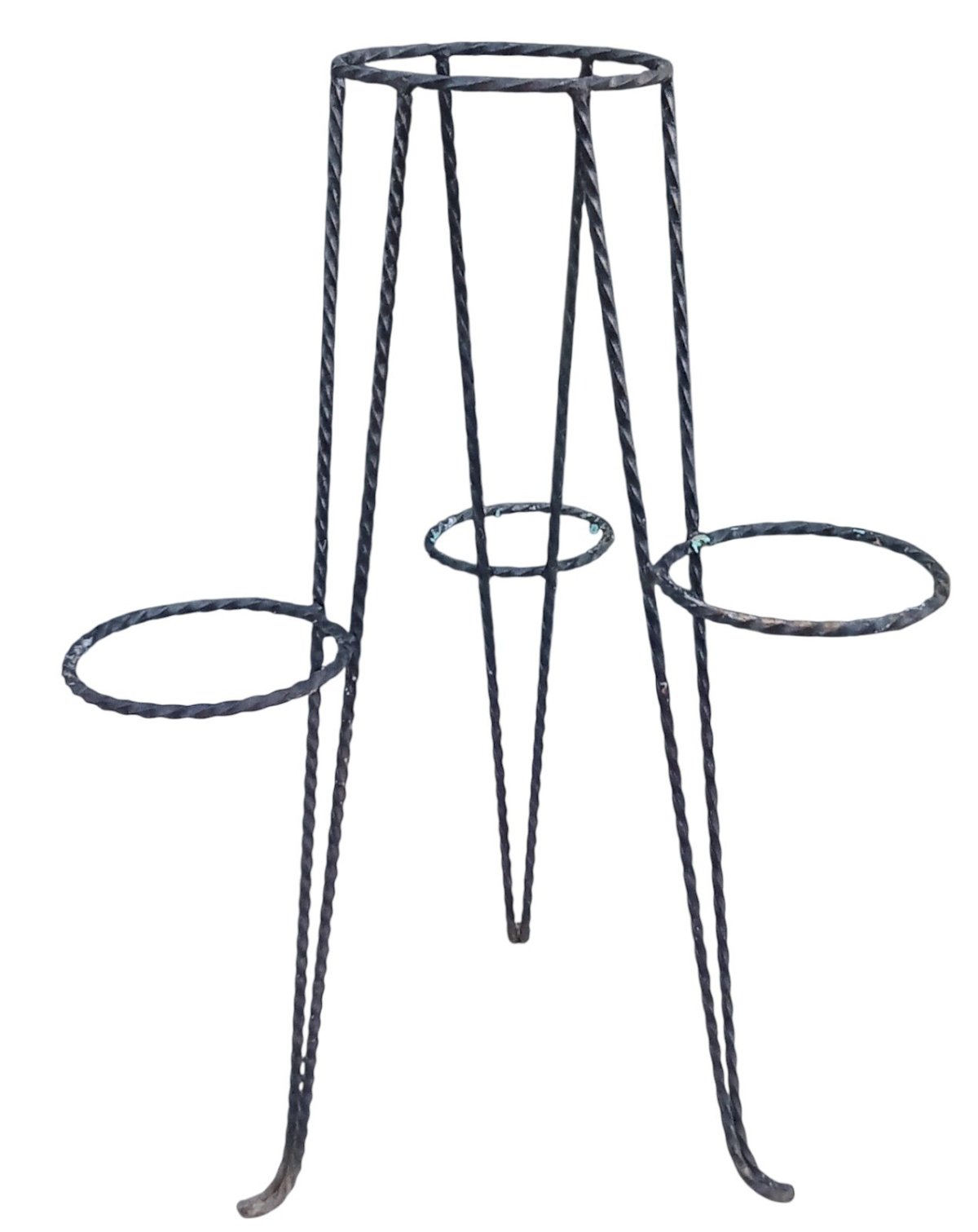 Vintage Wrought Iron Plant Stand. For 4 pots Good condition Height 82.5 cm Dimensions 57.5 cm x 59 cm Delivery possible via carrier/cocolis. Contact me for the rate depending on your region Subtype: Stand Material: Wrought iron