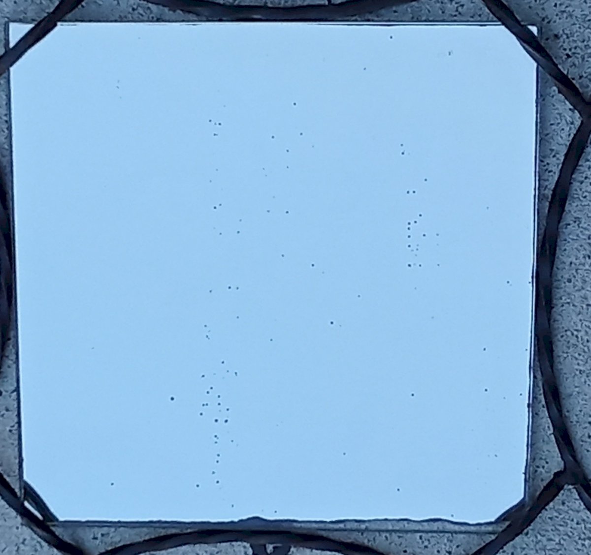 Vintage Wrought Iron Mirror. 1950s/1960s Good condition Some spots on the backing Worn backing on the edges see photo Total dimensions 40.4 cm x 40.4 cm Mirror dimensions 27 cm x 27 cm Frame material: Wrought iron