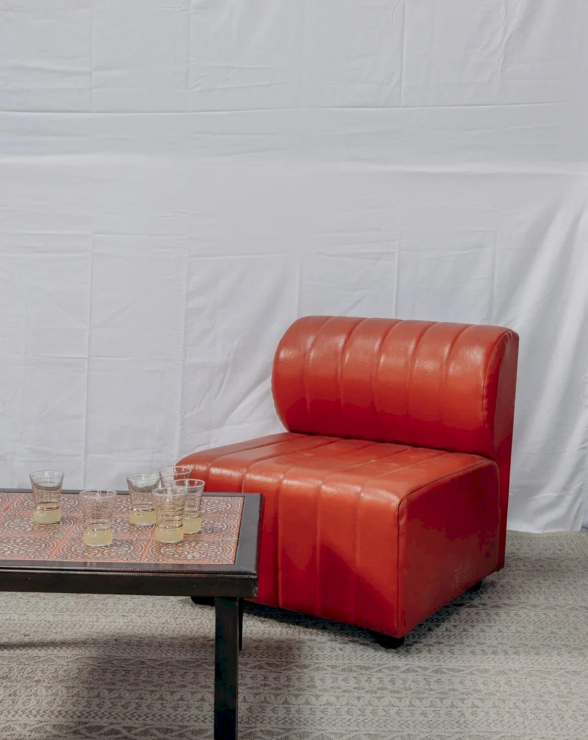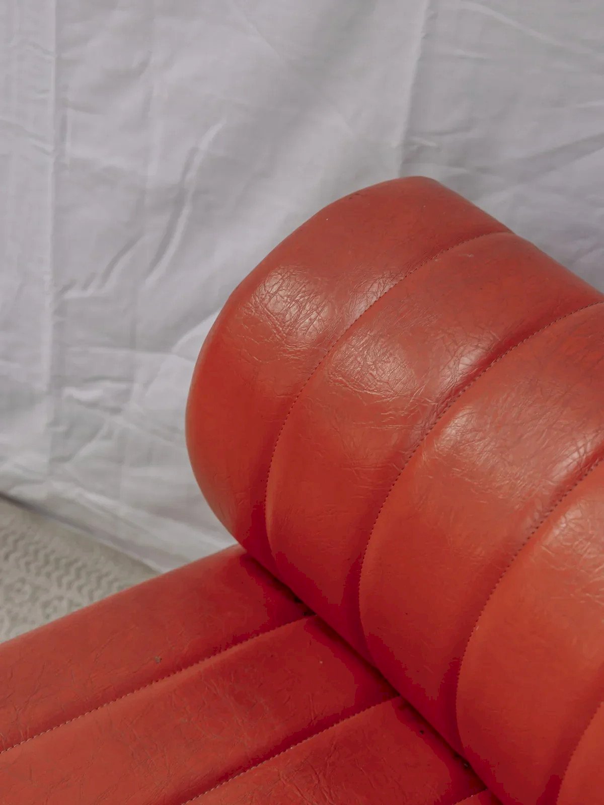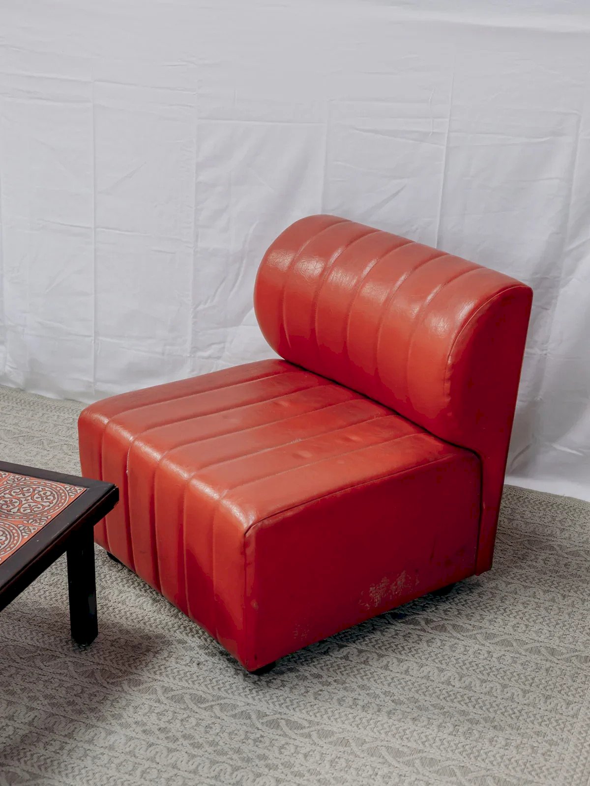 Discover this elegant low red armchair in faux leather from the 1960s, both retro and timeless. With its clean lines and vibrant color, it will bring a touch of dynamism to your interior. Ideal for a relaxation corner or a small living room, this unique piece combines comfort and style, making it a must-have for vintage design enthusiasts. All decoration lovers will appreciate its charm and originality. Length: 59 cm Width: 53 cm Height: 65 cm Seat height: 35 cm Seat depth: 50 cm Seat width: 59 cm Condition: Used: Item has been used. Item shows some signs of superficial wear... Used: Item has been used. Item shows some signs of superficial wear, fully operational and working correctly. It may be a demonstration model or an item returned to the store after a short period of use. any potential imperfections. Color: Multicolor Height: Faux leather, Synthetic leather Width: Armchairs and loungers Brand: Debongout Type: Vintage product Material: Faux leather, Synthetic leather Style: Contemporary