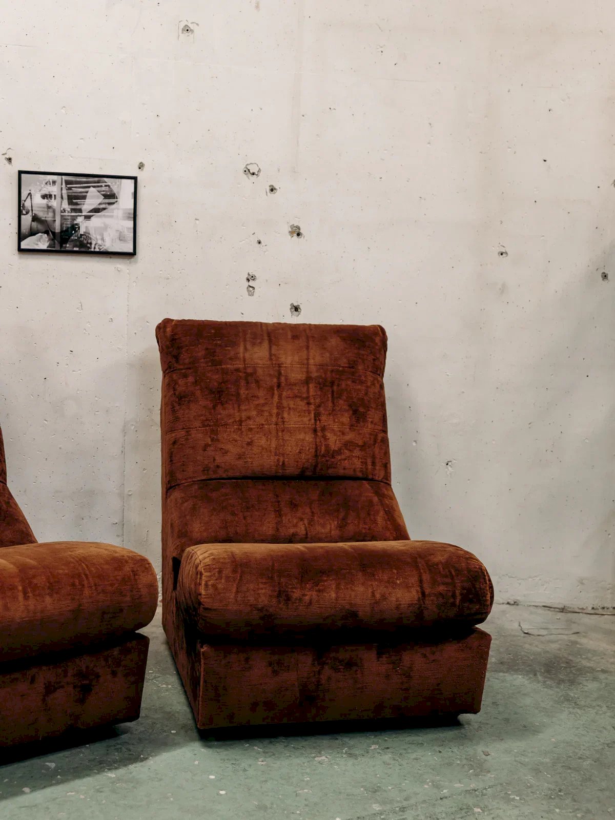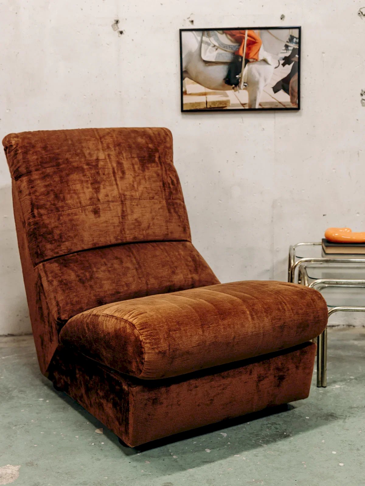 Enhance comfort and style in your home with this brown fabric armchair featuring a welcoming design. With a high back, it provides excellent support, while its low seat invites relaxation. Compact and cozy, it fits perfectly in a living room, bedroom, or reading nook. Its soft fabric and neutral color add a cozy and elegant touch, making this armchair an ideal choice for creating a space that is both comfortable and friendly. Sold individually, two quantities are available. Length: 62 cm Width: 85 cm Height: 84 cm Seat height: 40 cm Seat depth: 51 cm Condition: Used: Item has been used. Item shows some signs of superficial wear, ... Used: Item has been used. Item shows some signs of superficial wear, fully operational and functioning properly. It may be a display model or an item returned to the store after a short period of use. possible imperfections. Color: Multicolor Height: Fabric Width: Armchairs and accent chairs Brand: Debongout Type: Vintage product Material: Fabric Style: Contemporary