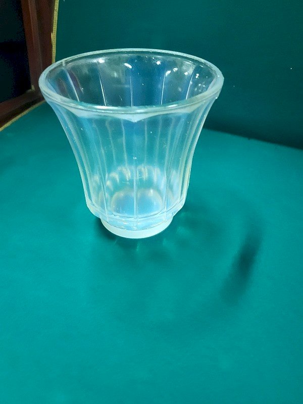 Pretty opalescent glass vase, it is in very good condition, it has no signature, it measures 12.7 cm in height and 12 cm in diameter.