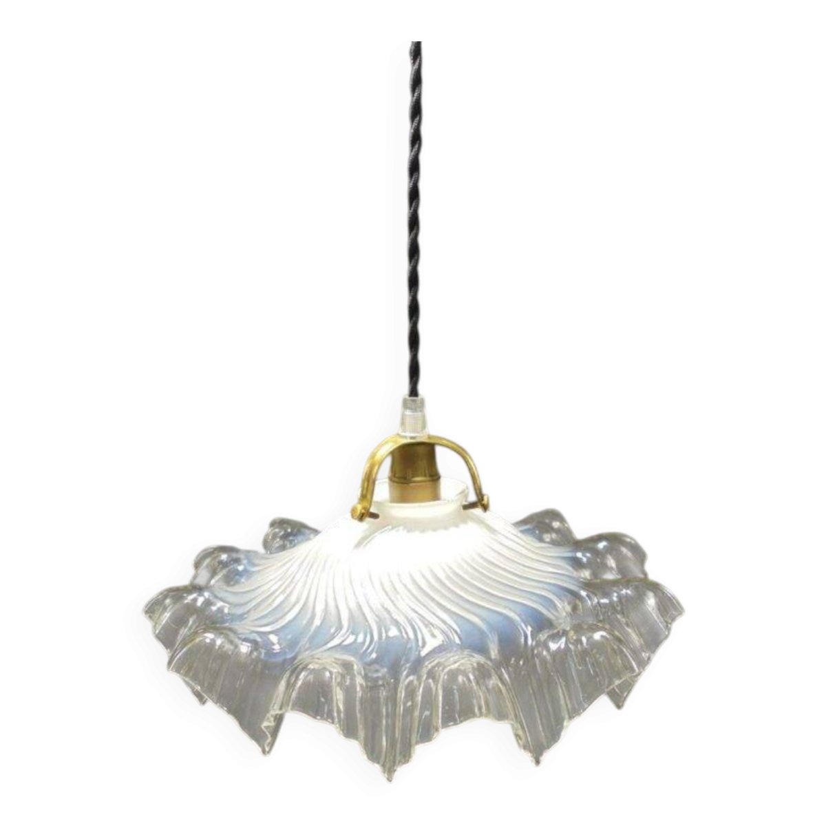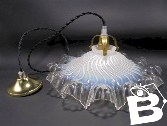 White opaline suspension becoming transparent at the edges. E14 socket. Width: 27.5 cm. Cable length: up to 80 cm. Weight: 630 g. L: 27.5 W: 27.5 H: 80