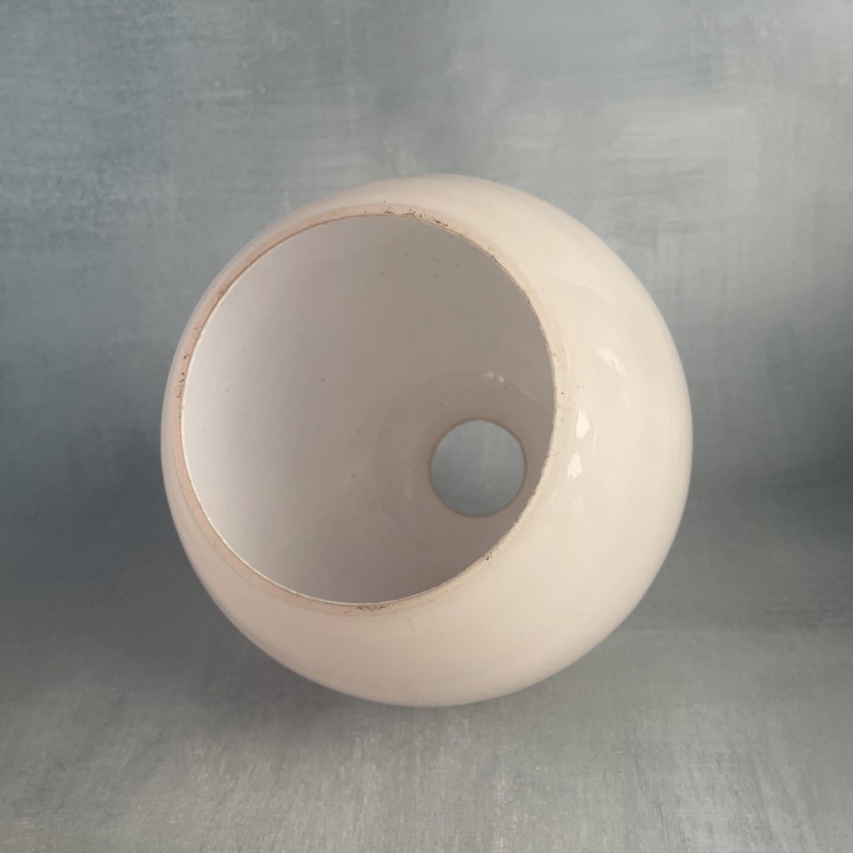 Globe or tulip light fixture open sphere opaline glass, white and pink double-walled Height of globe ~ 10.2 cm Diameter of fixing hole ~ 2.8 cm Diameter of opening ~ 7.5 cm Weight ~ 0.3 kg Very good condition, some chips at the hole and opening, see photos Light not included. Remember to group your purchases to reduce shipping costs! Type: Shade Dominant color: Purple Material: Glass Style: Industrial