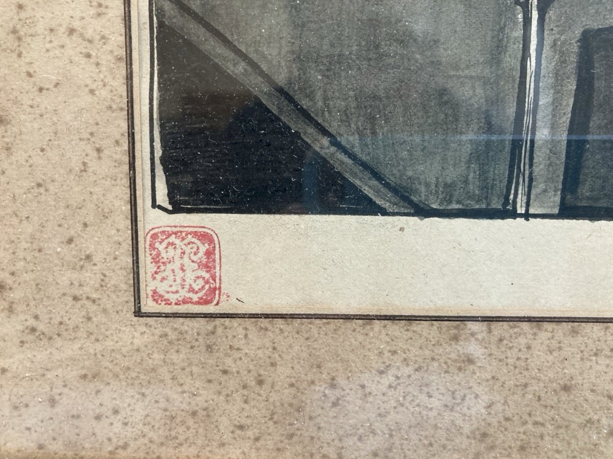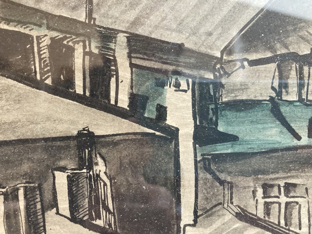 Original drawing architecture ink wash watercolor paper Toulouse?
