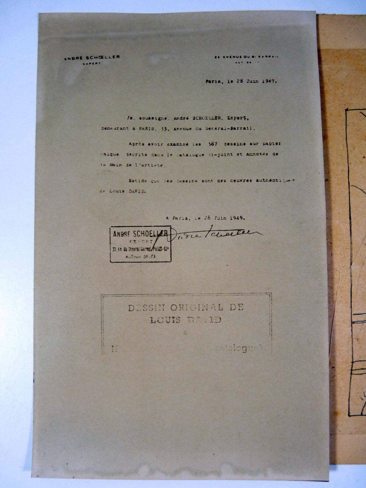 Original drawing by Louis DAVID 1748-1825 with certificate of authenticity. Very good overall condition, small age spot, see photos. Dimensions: drawing: 15 x 14 cm mounting board: 25.5 x 21 cm. Authenticity: Original Type: Drawing Period: 19th century and earlier Material: Ink Genre: Classicism Theme: Architecture