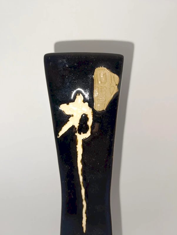original elongated Asian vase with symbols in good condition Black