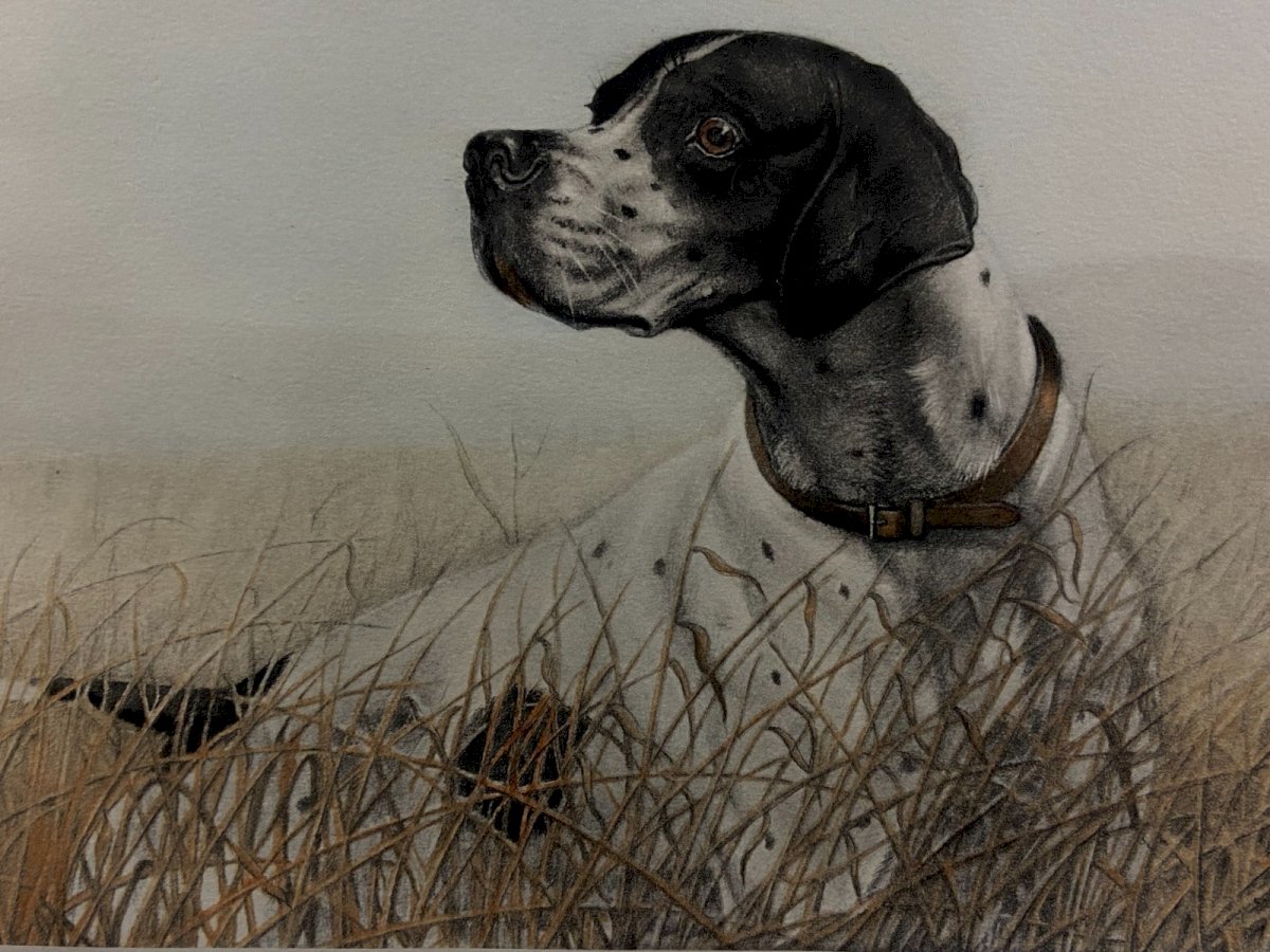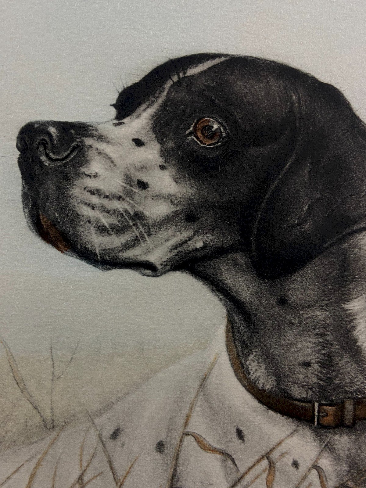 Original engraving signed Léon DANCHIN 1887-1938 featuring a hunting dog