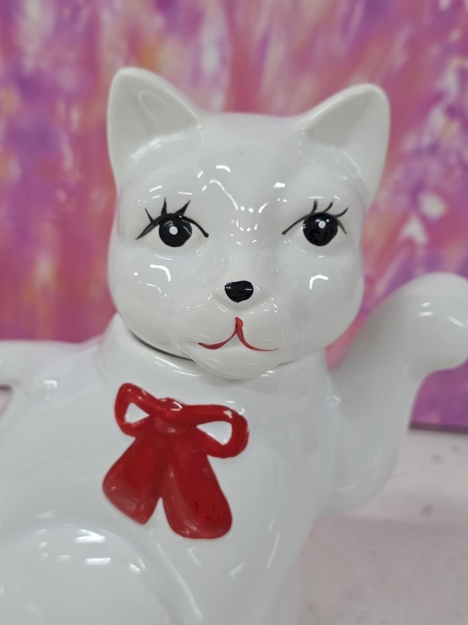 cat-shaped porcelain teapot, in perfect condition, total length 17cm, total height 17.5cm