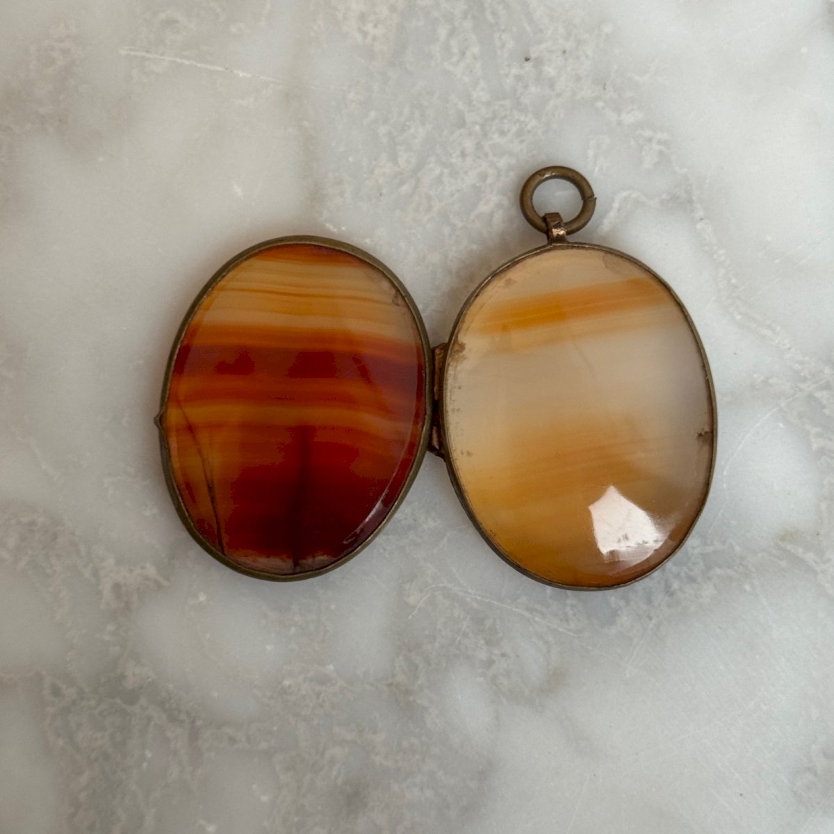 Oval-shaped agate pendant, late 19th century M3927. This agate pendant opens. It is in generally good condition, with minimal chips on the agate (hardly noticeable) and slight wear on the metal. Our photos allow you to appreciate the quality of the item. For the condition, please refer to the detailed photos. Feel free to zoom in. The photos are an integral part of the description. Dimensions: Height: 4 cm Width: 2.7 cm Depth: 1 cm A: YATPE38KYM P: 1675388 I remain at your disposal for any questions. Condition: Used item that has been worn. Possible imperfections. Gemstone: Agate.