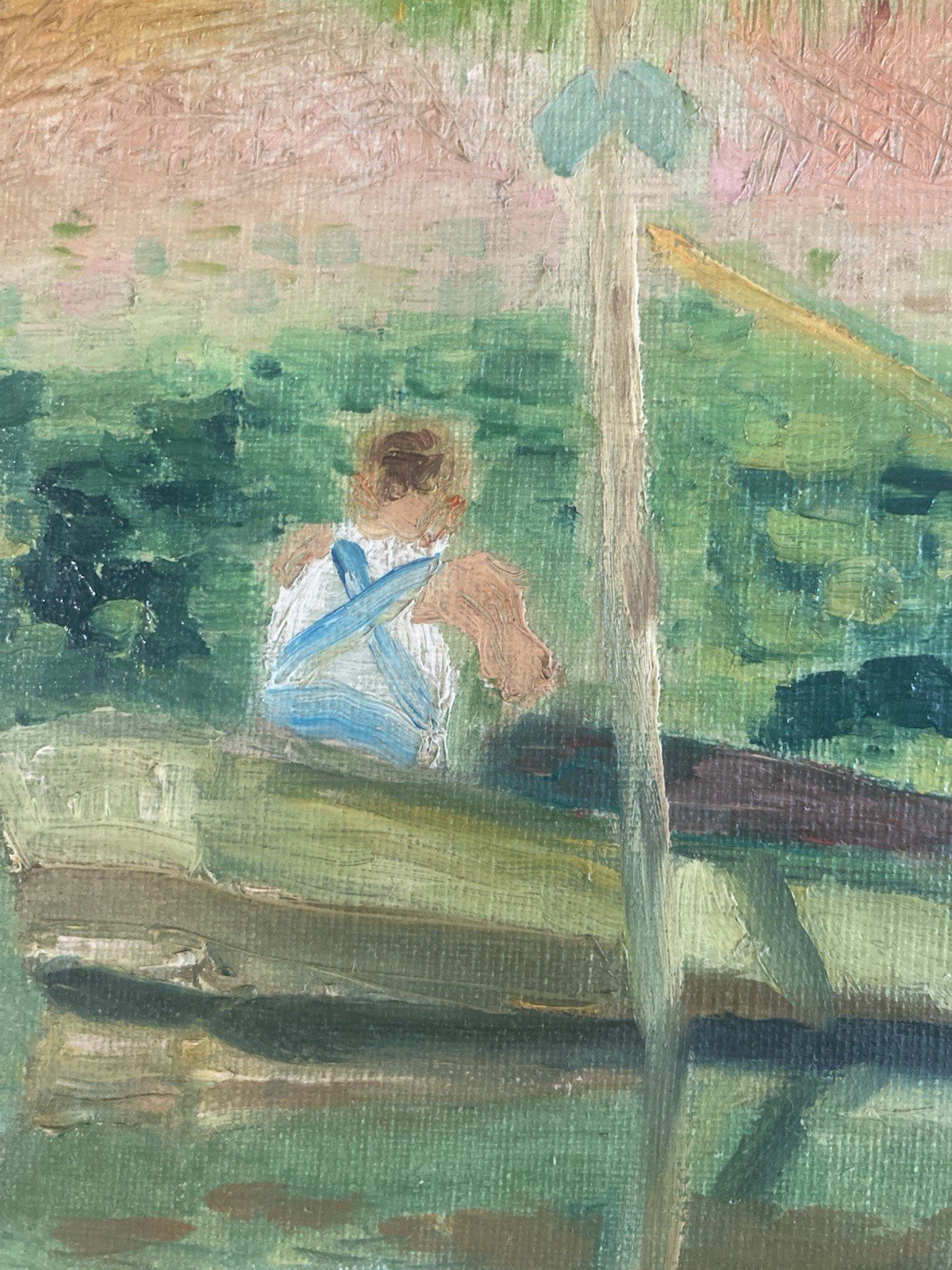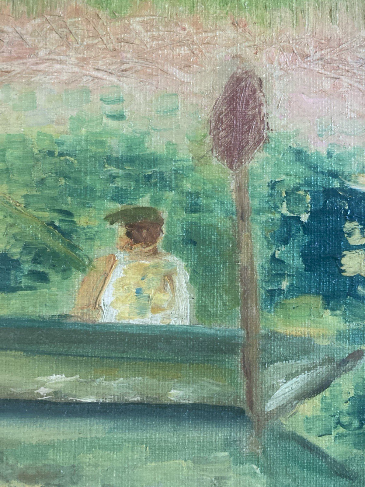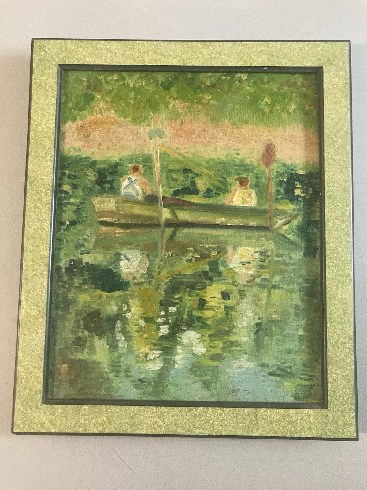 Painting 1950 Boat Fishing Oil on Canvas Impressionism Impressionist