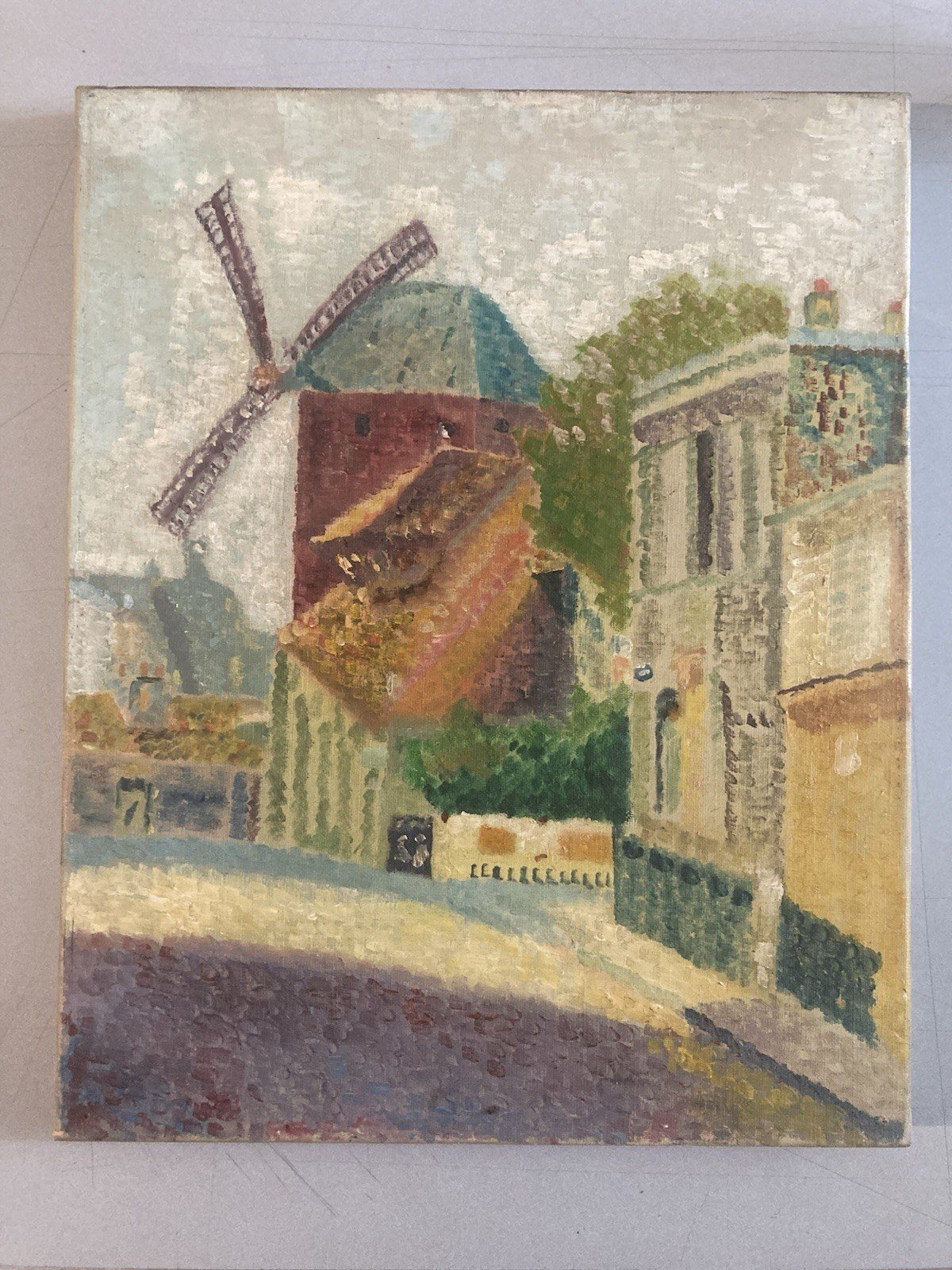 Painting 1950 Moulin Paris Oil Canvas Impressionism Impressionist