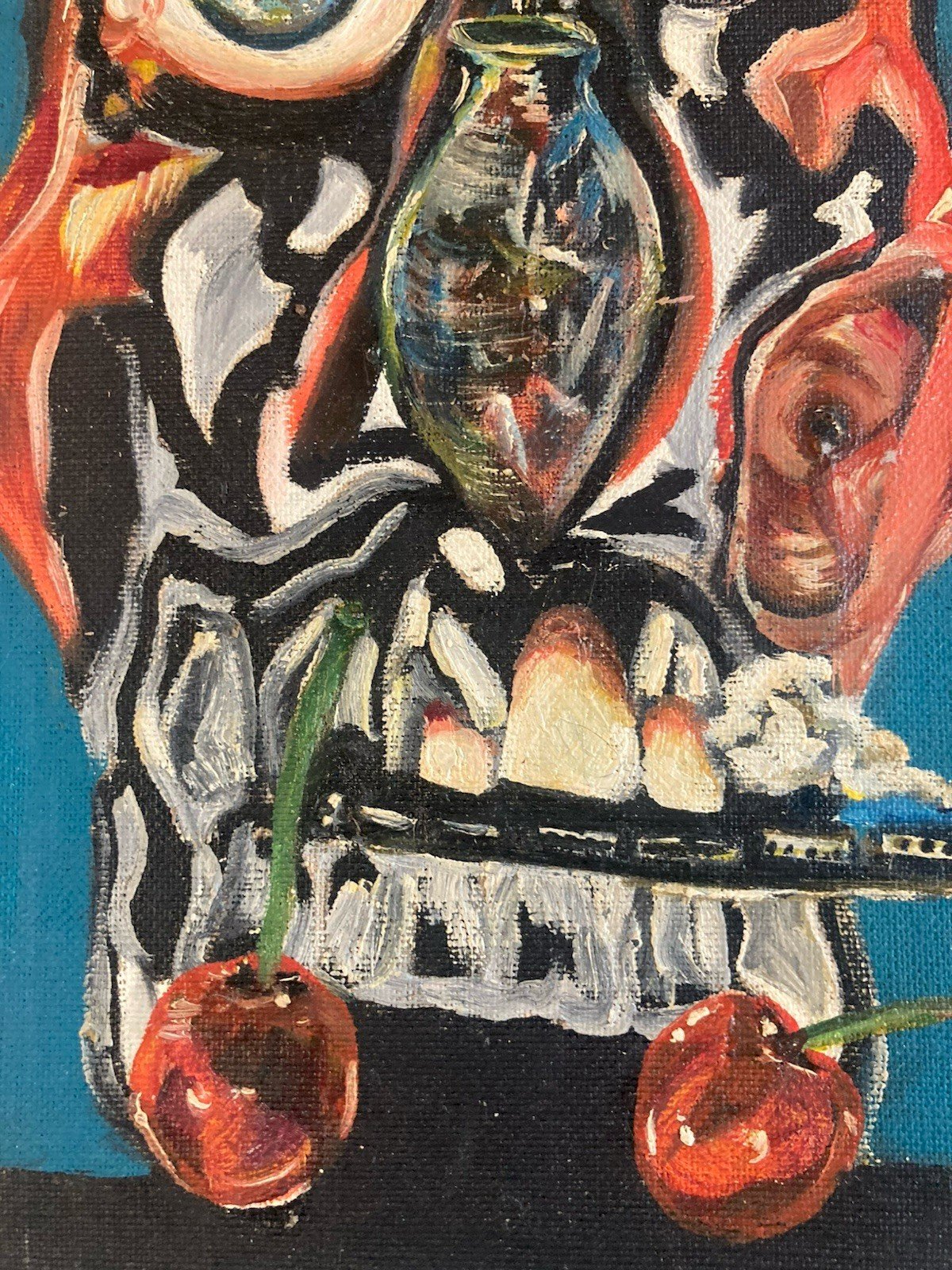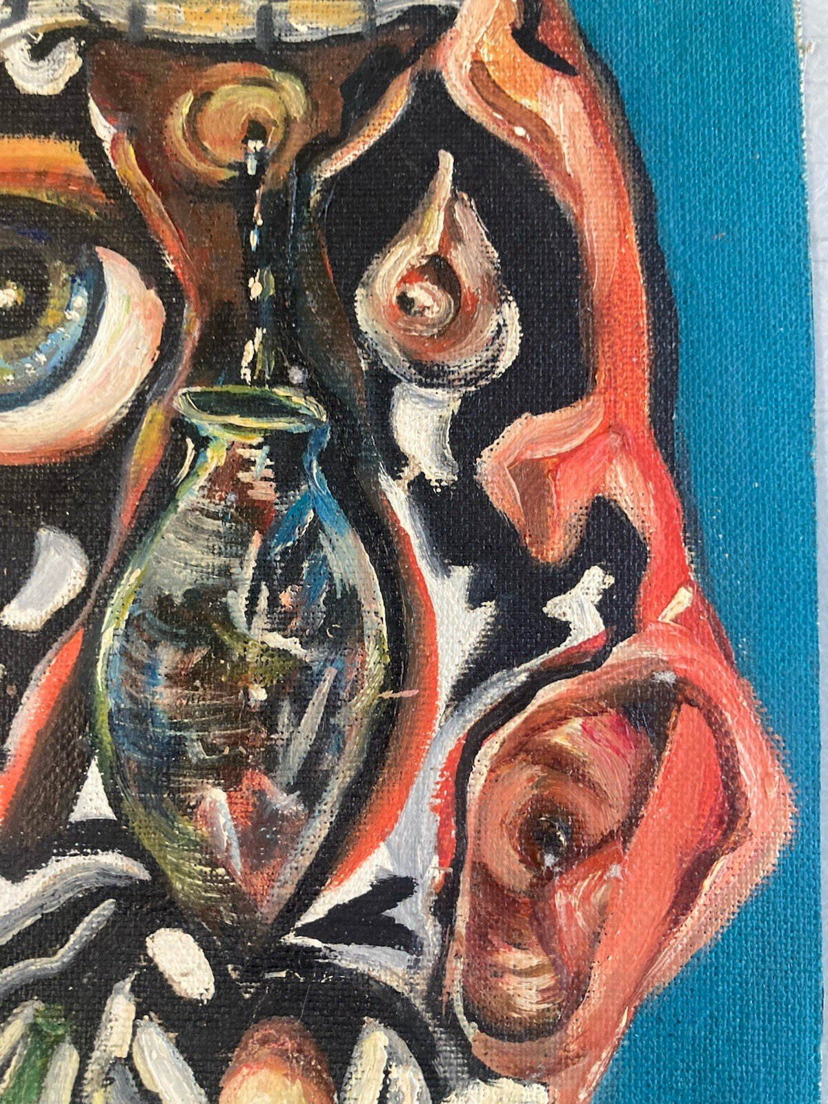 This is a free oil on canvas, reattached to paper from the 1960s, depicting a surrealist vanity, see photo, author to be identified. Type: Oil Style: 1970 Genre: Expressionism Features: Signed Theme: Portrait, Self-Portrait