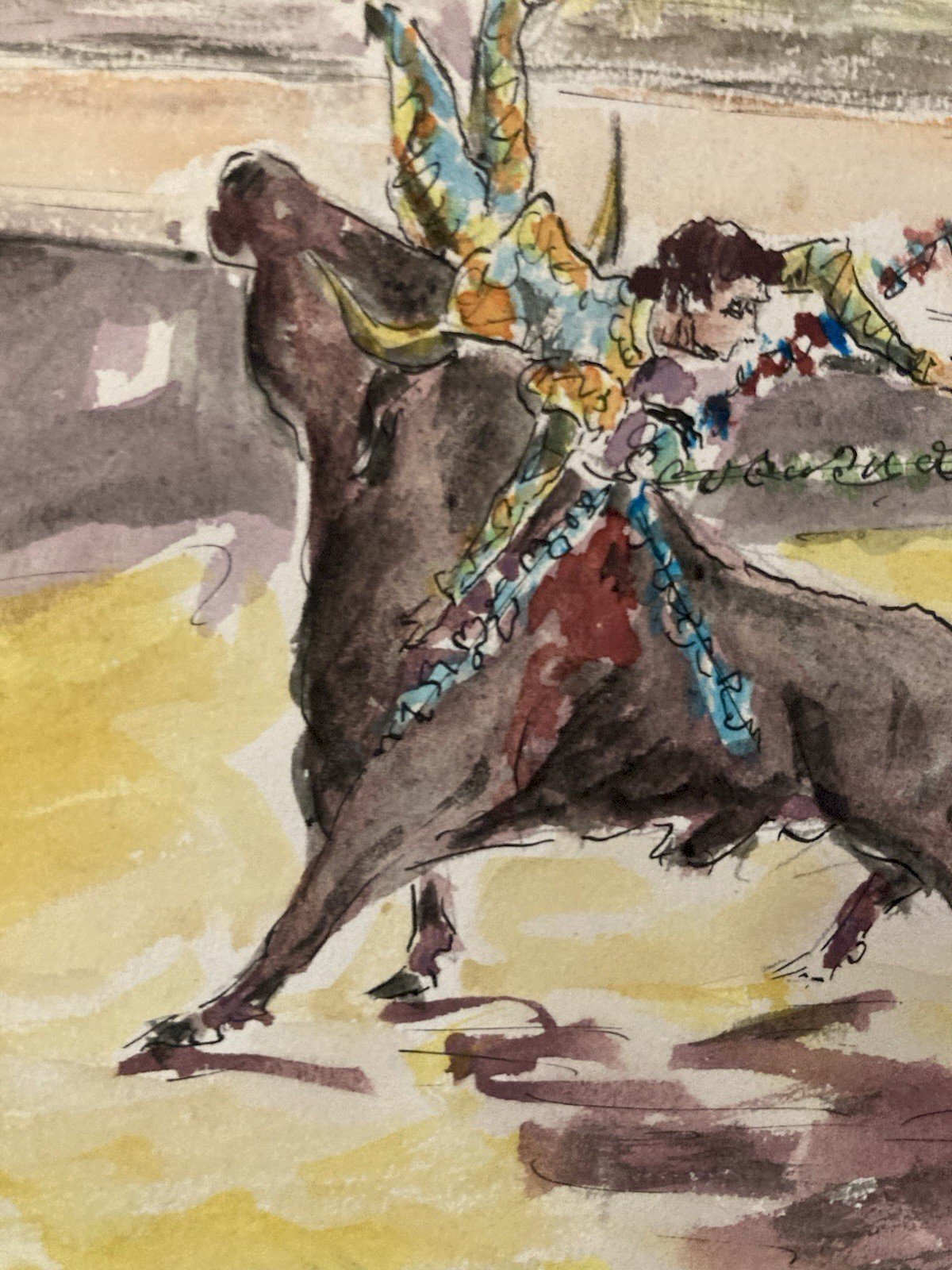 Painting Bullfighting Tauromachy 1960 Animal Bull Arena Art Old Picador