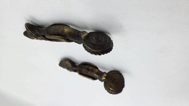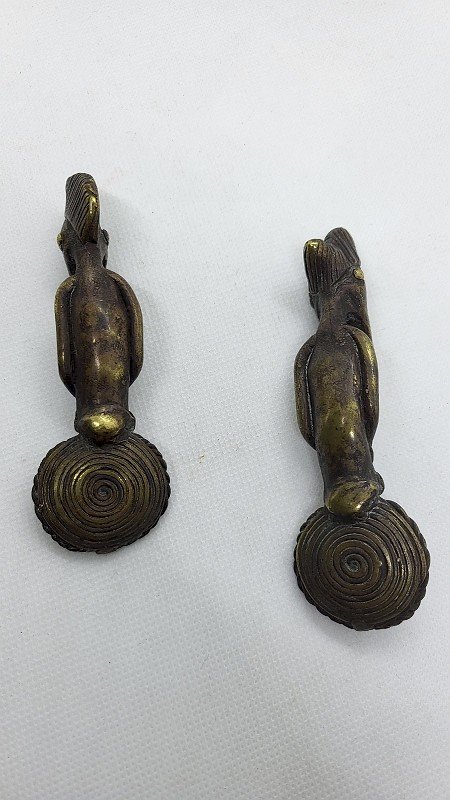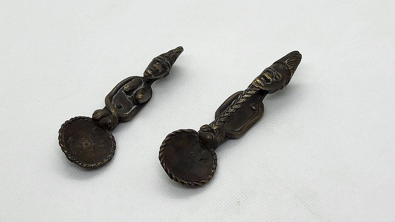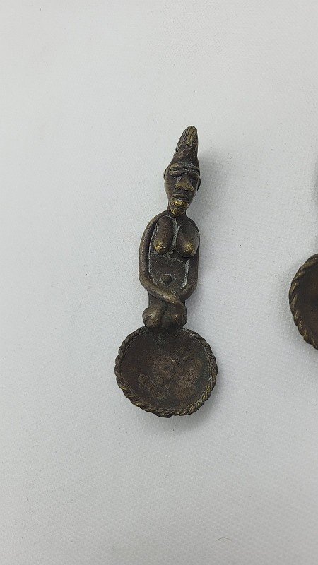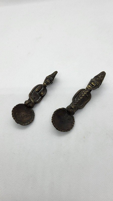 Beautiful pair of African bronze spoons they are in very good condition they are made of solid bronze they represent a man and a woman it is a very nice antique piece the woman measures 9.6 cm tall the man measures 10.5 cm tall Type: Display item, Decorative Sub-type: Spoon Material: Bronze