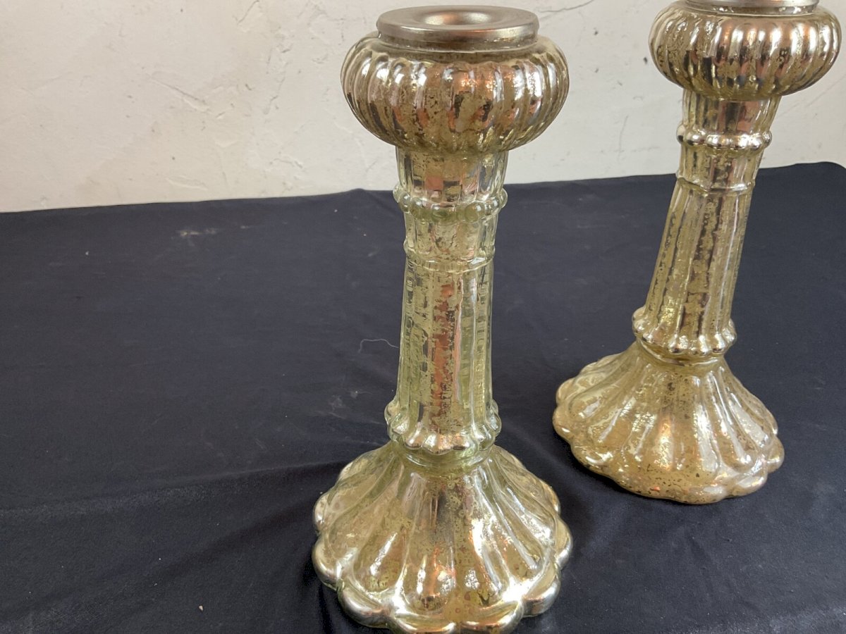 Pair of antique gilded blown glass candlesticks, mercury Height: 22 cm Type: Showcase object, Decorative Origin: France Sub-type: candlestick Material: Glass