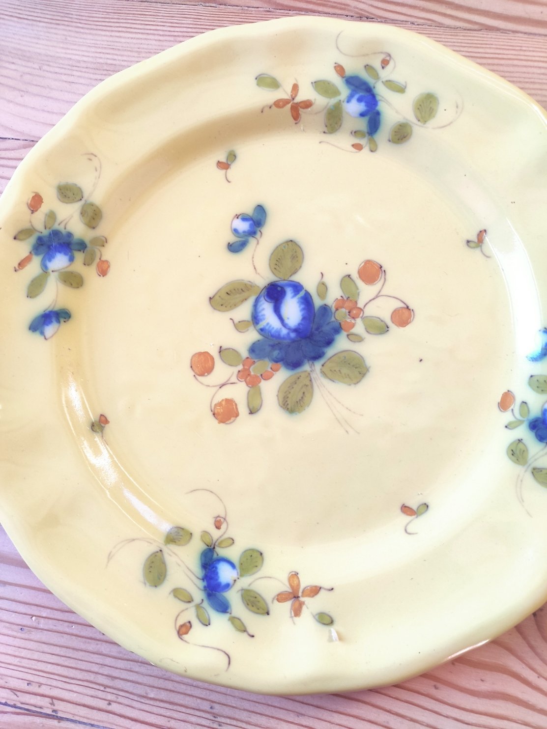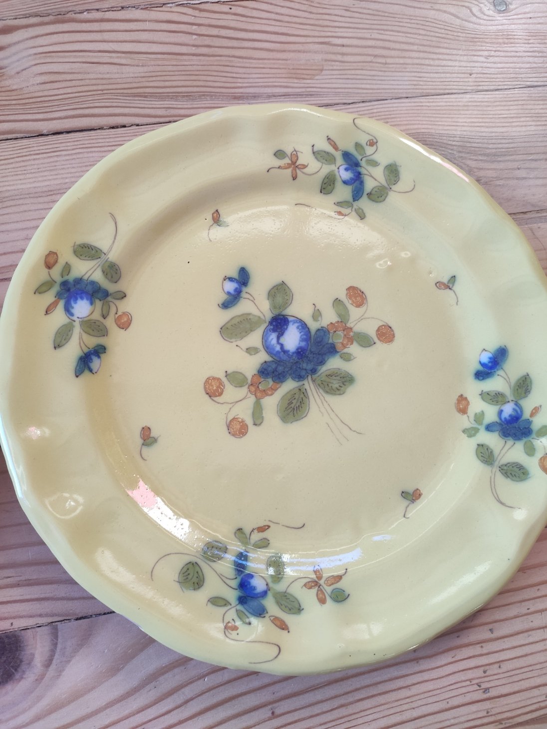 Pair of Antique Lunéville Plates - decoration with Cornflowers on a yellow background