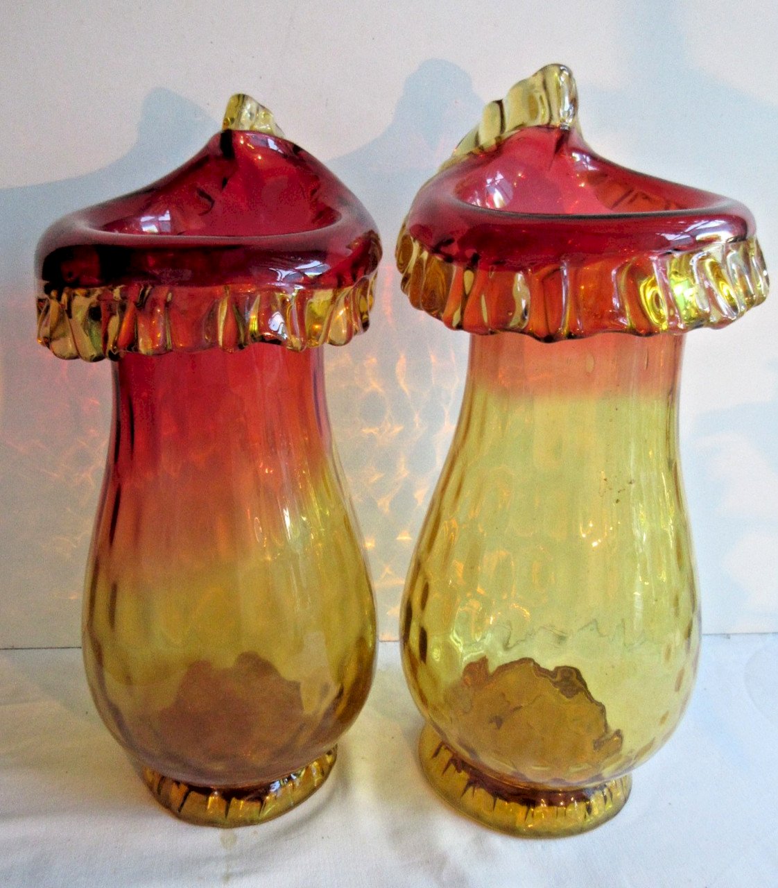 PAIR OF ART NOUVEAU VASES RED AND AMBER GLASS, AMBERINA