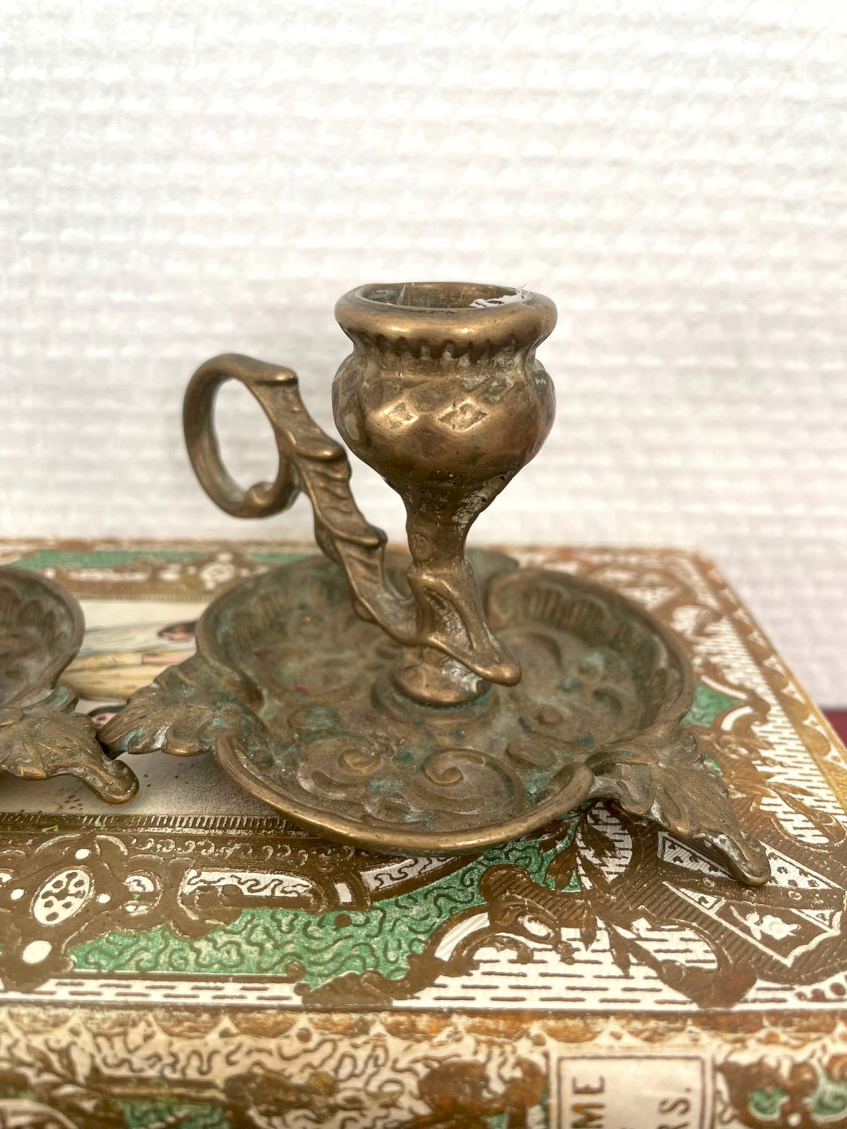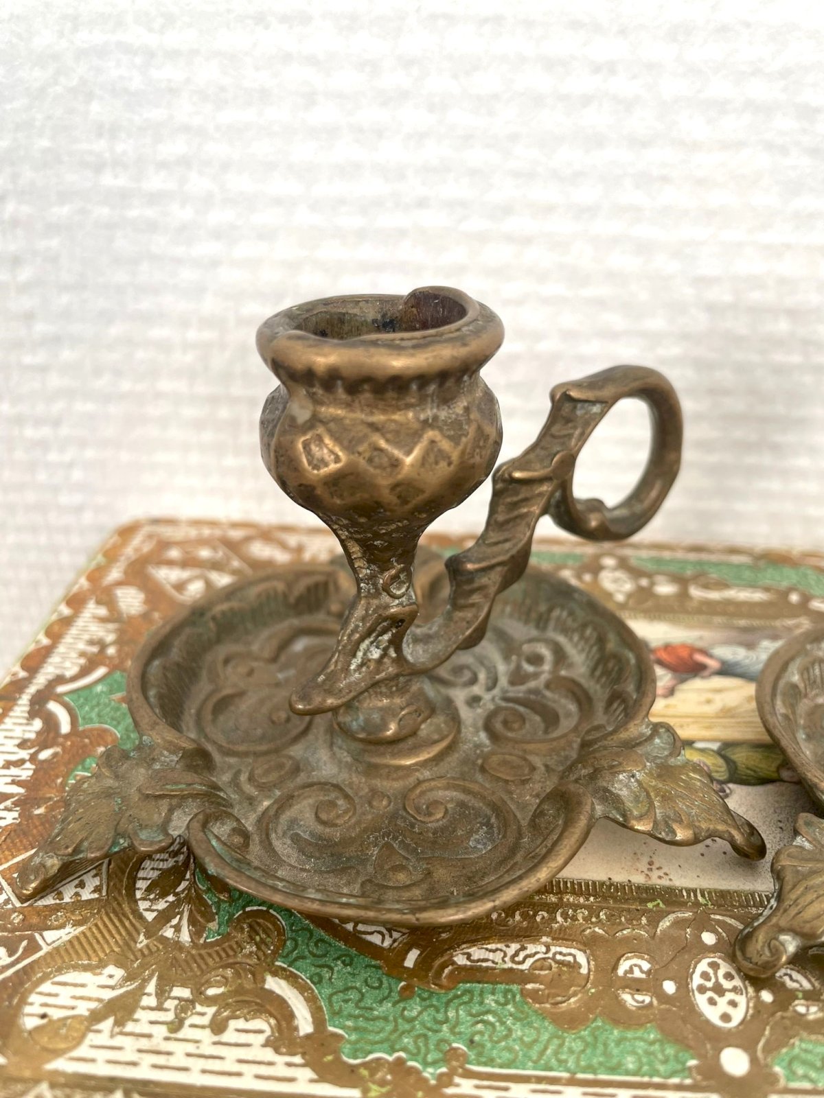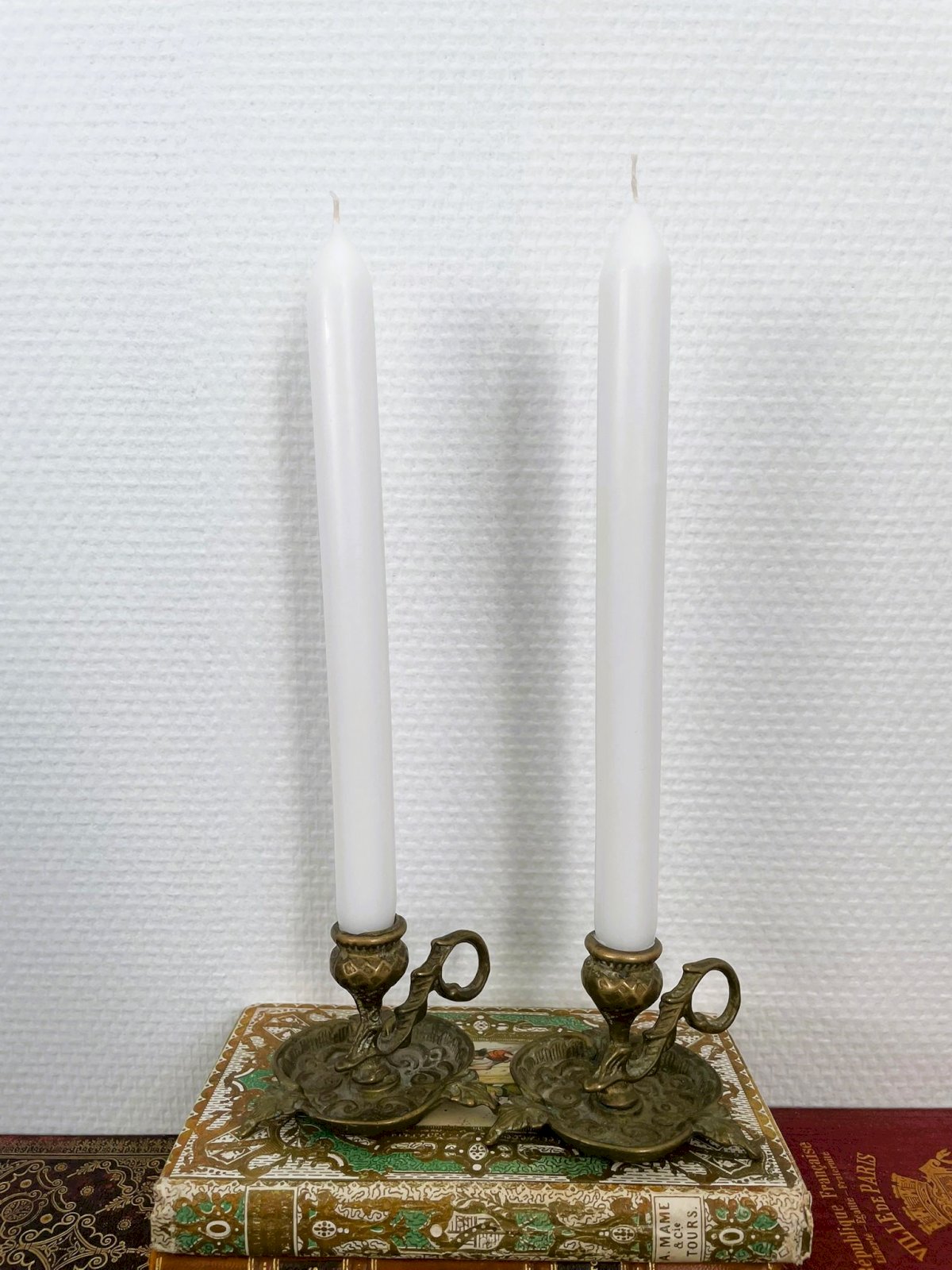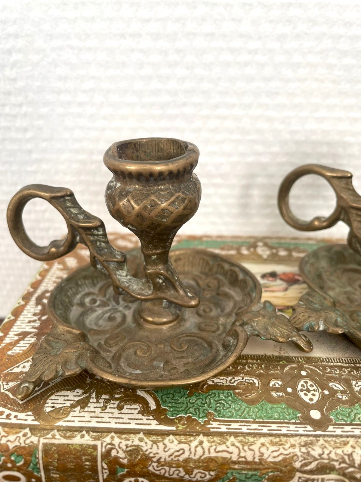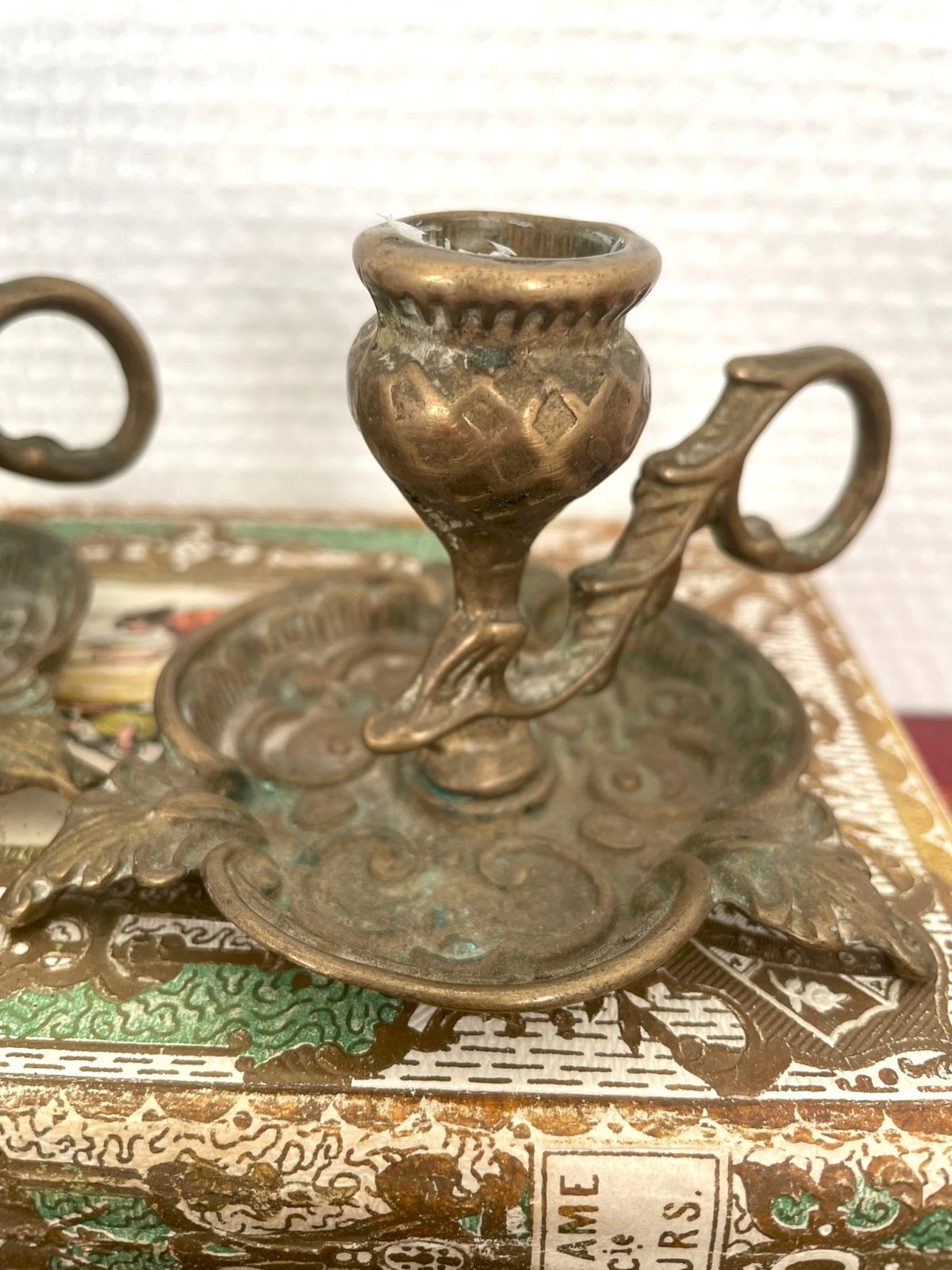 Beautiful pair of candlesticks dating from the 60s-70s in brass with floral decoration in good condition (made in second-hand goods)