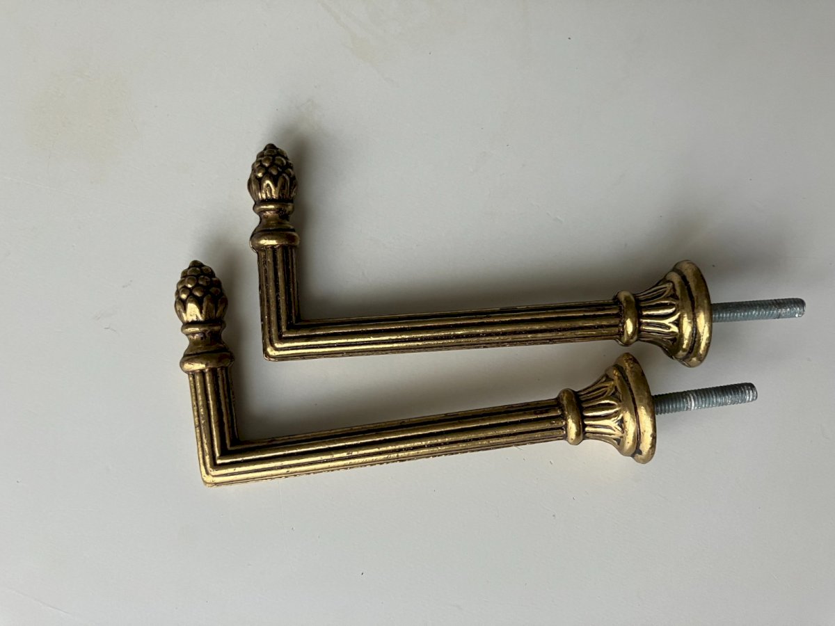 Pair of curtain tieback hooks in brass to be screwed on, length 8.5 cm (without fixing screws) 10.8 cm (with) good condition, shipping via MONDIALRELAY Condition: Used item that has been used. Item shows some superficial signs of wear, fully operational and functioning correctly. It may be a demonstration model or an item returned to the store after a short period of use. Any imperfections. Color: Gold Type: Tieback Material: Brass Items included: Hook