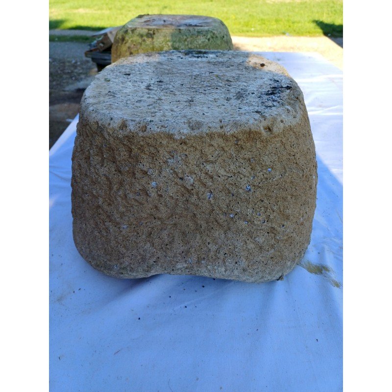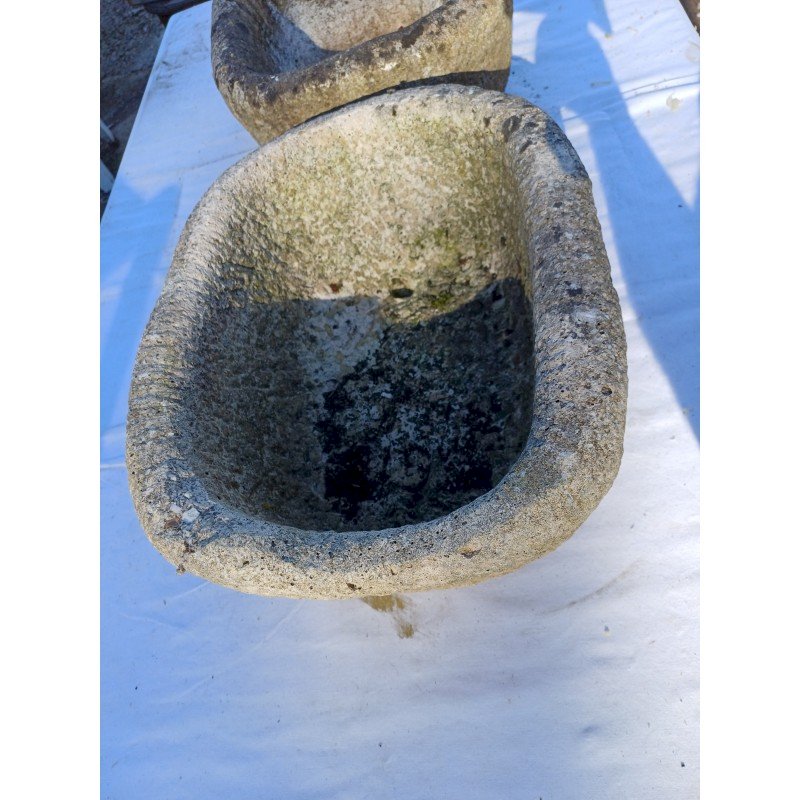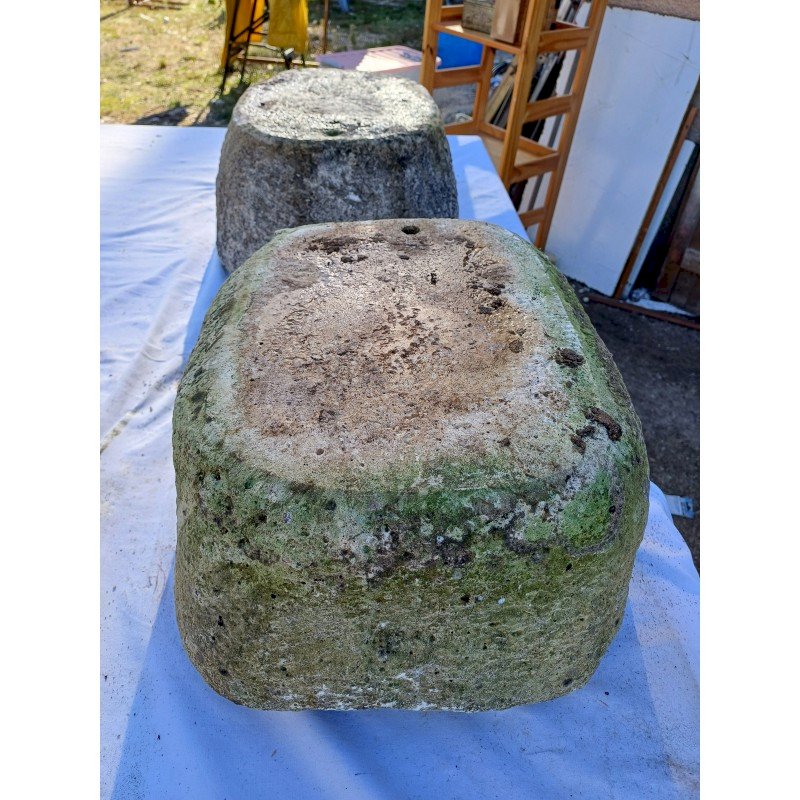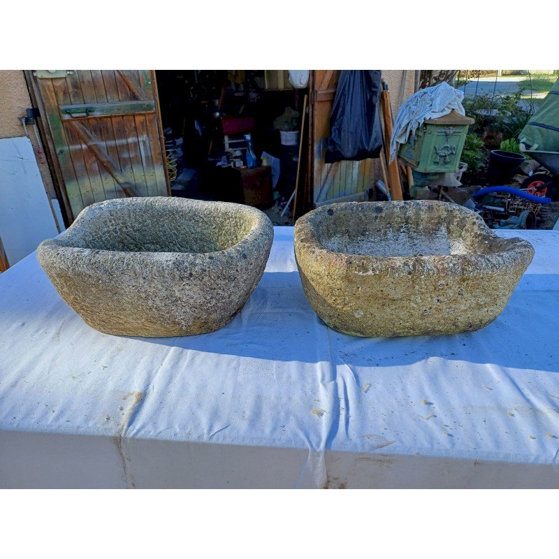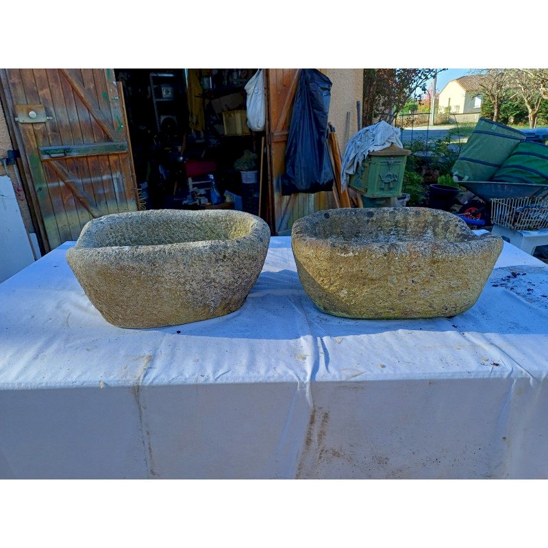 Pair of Dordogne Stone Basins 19th century, Height: 21 cm, Length and Width: 46 cm by 37 cm, 30 kg each, very good condition, drainage hole in each stone.