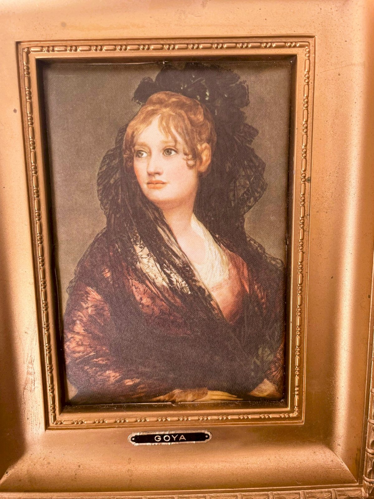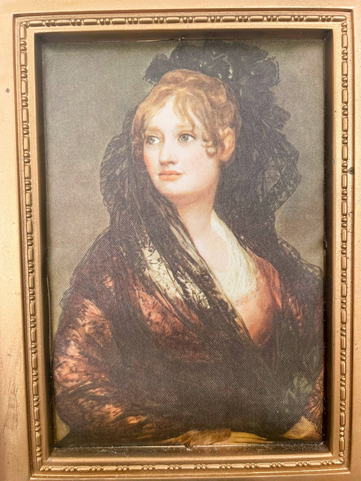 On the left: reproduction of the oil painting "Portrait of Doña Isabel de Porcel" by Francisco de Goya, Spanish painter (1746 †1828).