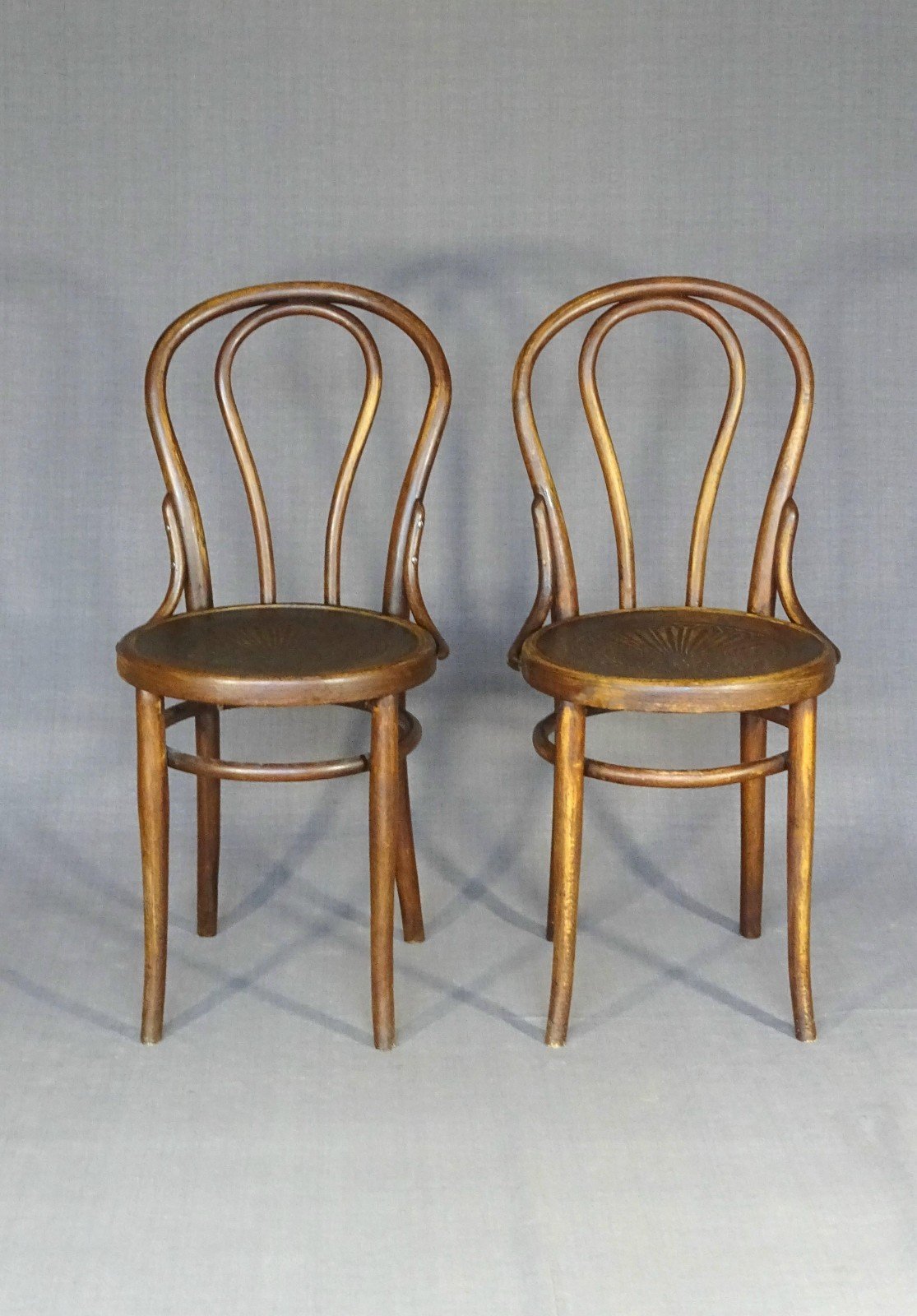 Pair of KOHN bistro chairs No. 18 1/2 from 1900, wooden seat - No Thonet -