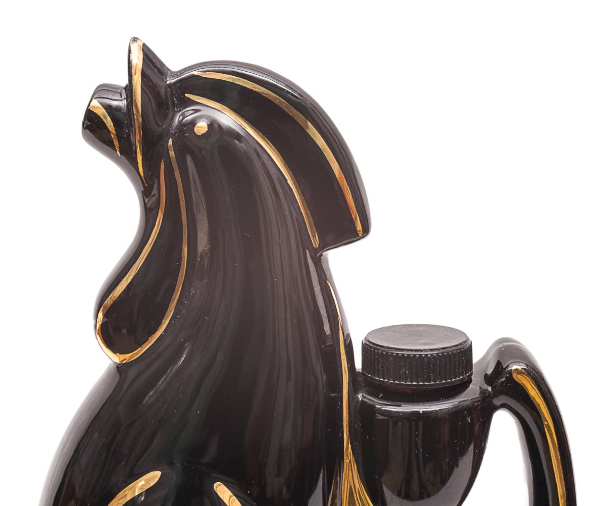 Pair of liqueur bottles by Garnier Golden/Black/Red Ceramic Animal