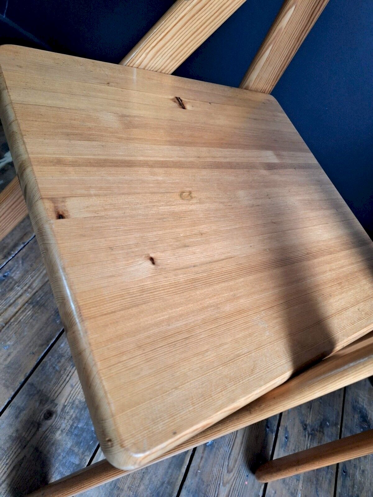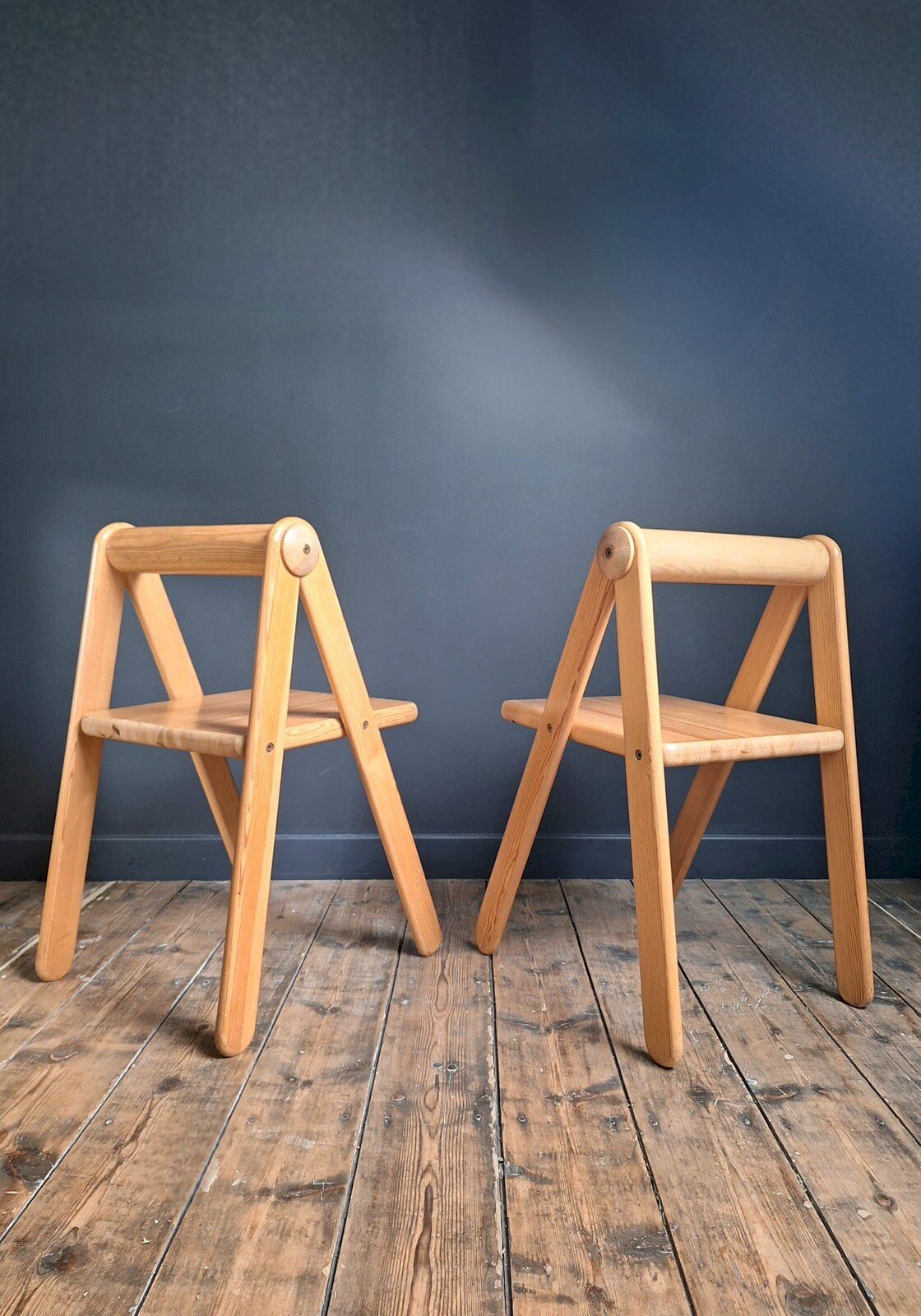 Thank you for writing to me if you wish to make me an offer. Pair of Pierre Grosjean chairs, vintage seating furniture, indivisible lot please. Chairs with solid pine scissor bases. Dimensions 43x53xh77cm, seat height 47cm (adult size as there are also children's models). Normal signs of use: a slight dent on one seat, a few stains or scratches. Beautiful patina of time. Bright and very comfortable. Very nice wood grain. Stable, heavy, and sturdy. Pickup at my home or delivery possible via carrier (e.g., €50 to Paris and the Paris region, please contact me for other destinations). Delivery times of 2 to 4 days are imposed by and are therefore given purely as an indication. Vintage Scandinavian design children’s chair type: Chair.