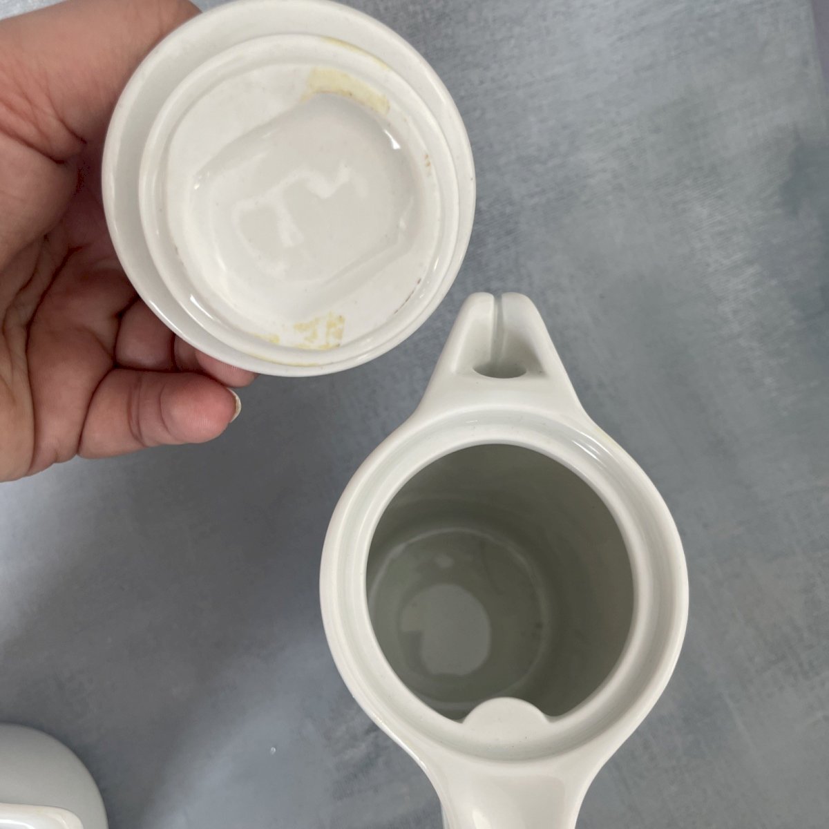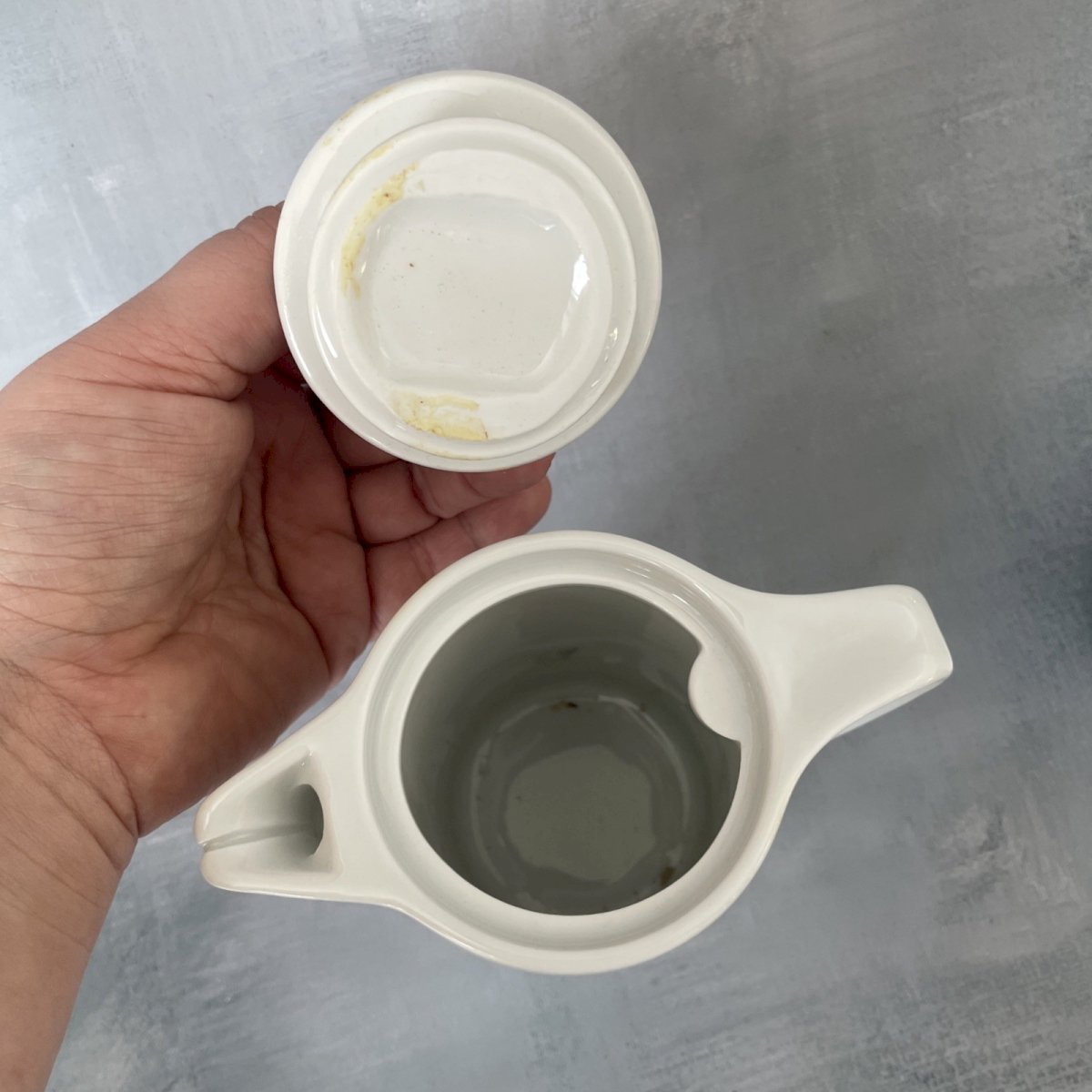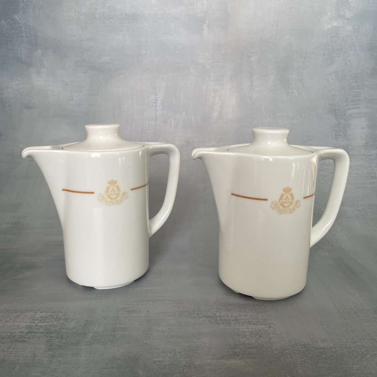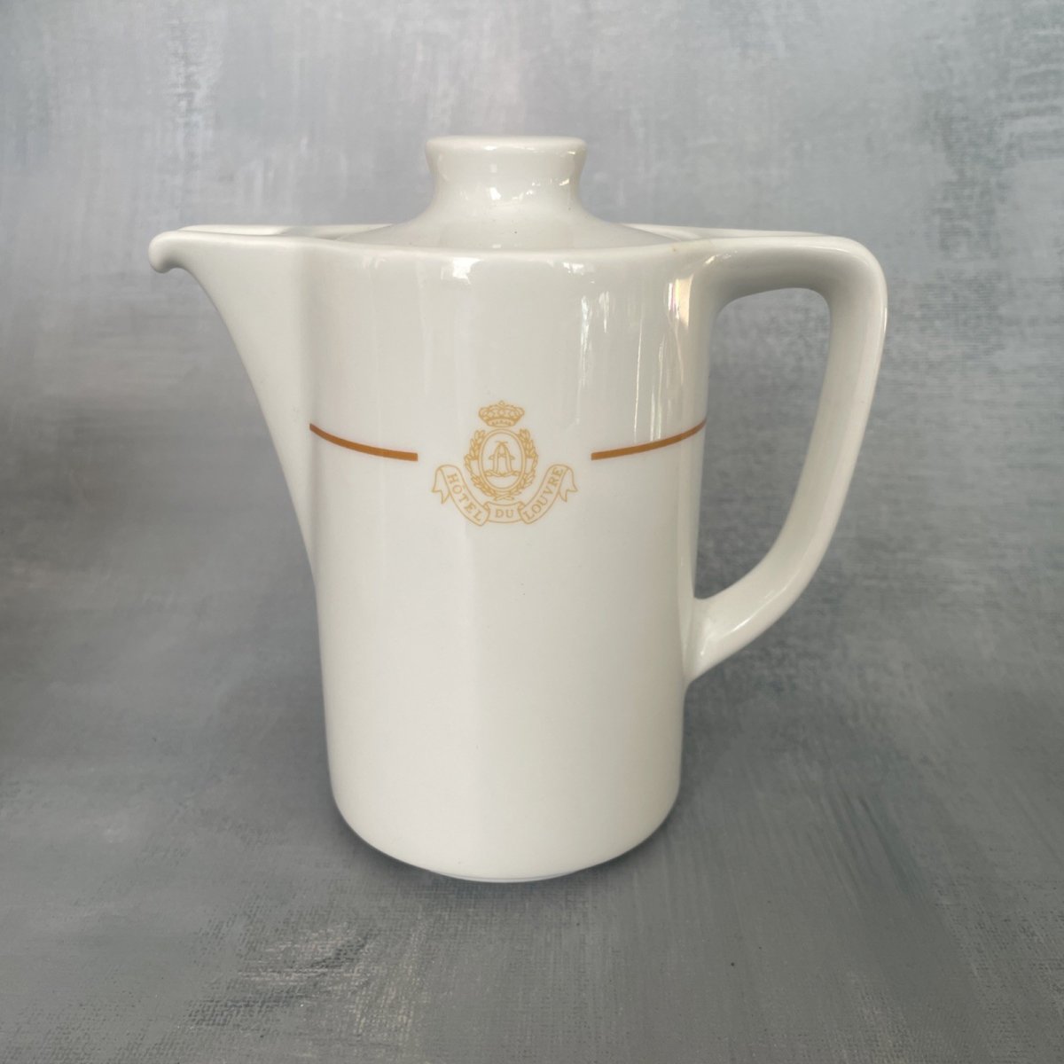 Pair of teapot pouring jugs German porcelain Schönwald HOTEL DU LOUVRE tableware Base diameter ~ 7.3 cm Height ~ 13.5 cm with lid Total weight ~ 0.9 kg Excellent condition, no issues, see photos. Remember to group your purchases to reduce shipping costs! Condition: Used Item that has been used. Item showing some superficial signs of wear, fully operational and functioning correctly. It may be a demonstration model or an item returned to the store after a short period of use. Any imperfections. Color: White Brand: SCHÖNWALD Type: Teapot Material: Porcelain