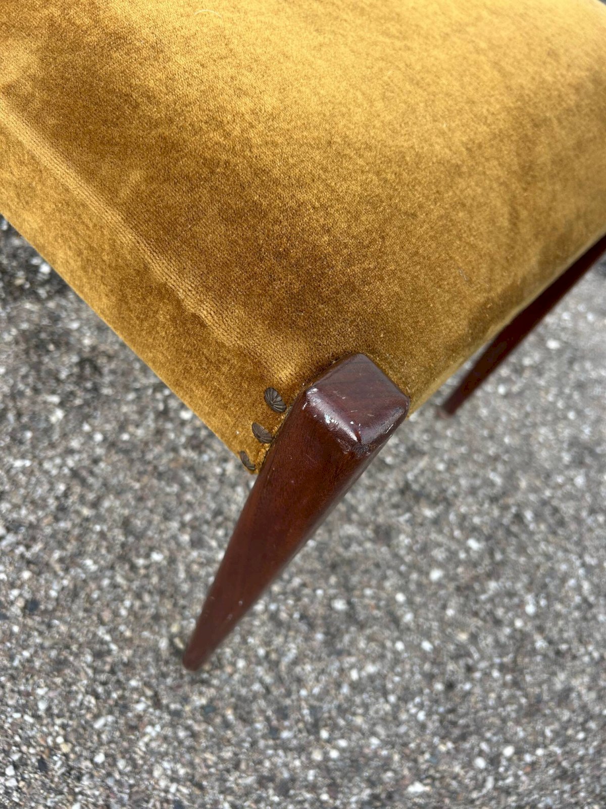 A pair of 1960s Scandinavian chairs in teak and original velvet. L: 46 W: 50 H: 82