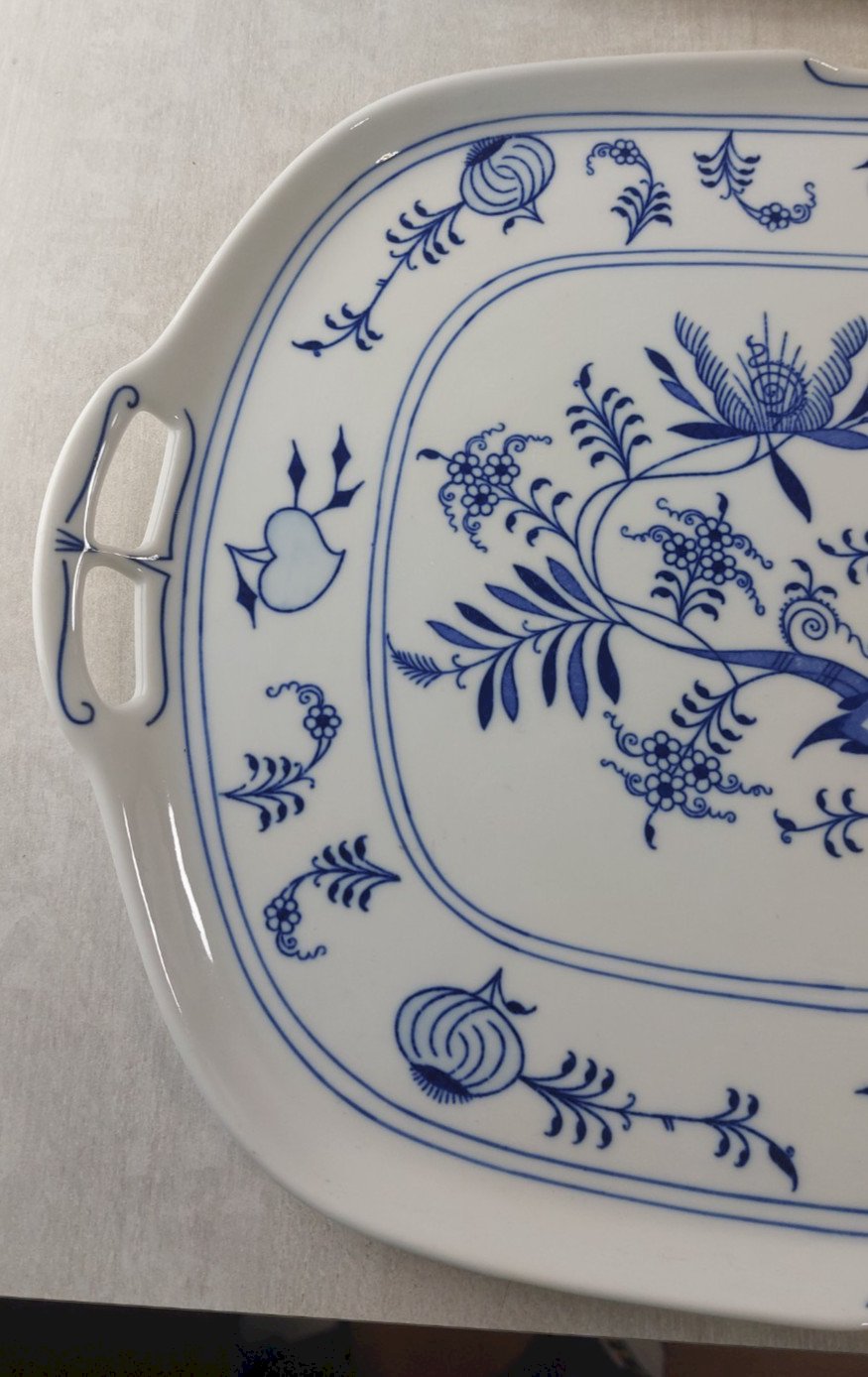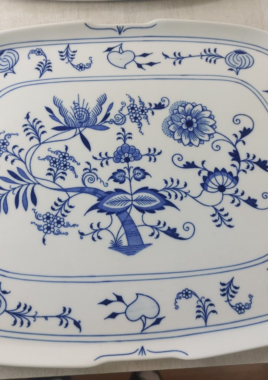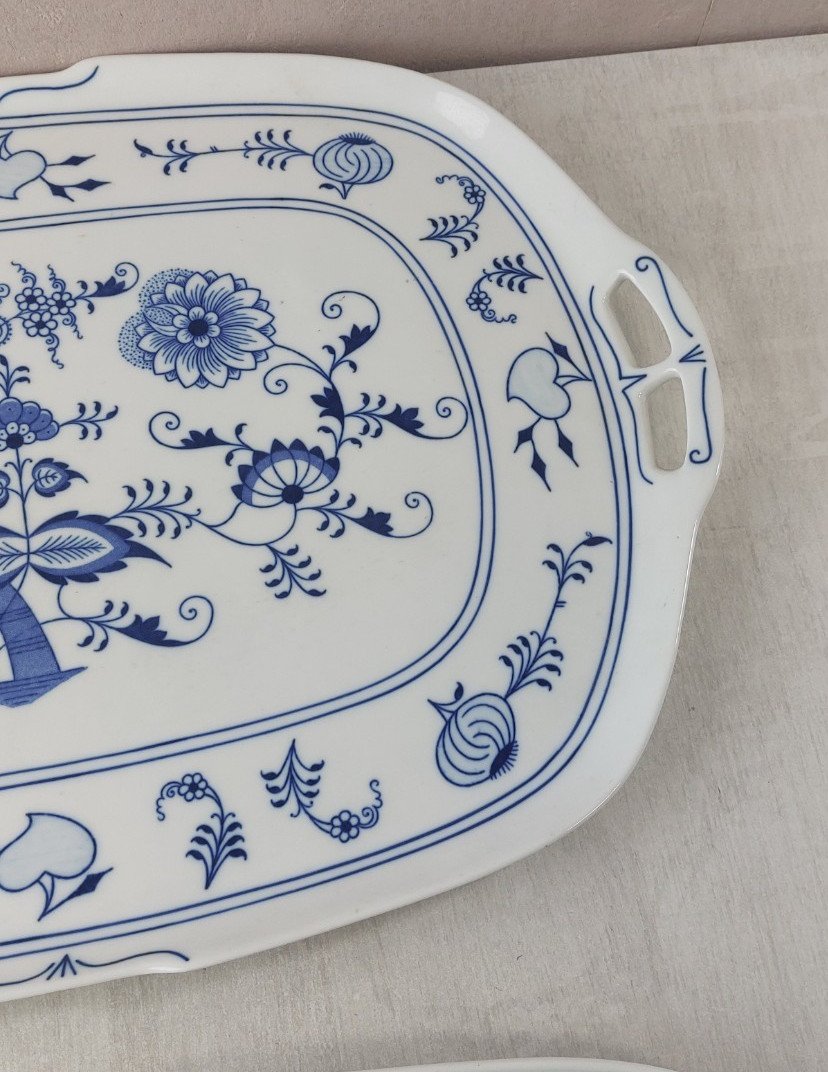 Pair of large serving platters, Blue Onion / onion flowers / Zwiebelmuster pattern, made of porcelain from Czechoslovakia / Czech, Meissen style in good condition, no cracks or chips, dimensions 48 cm X 33.2 cm, see photos. Check out my other items! Discount on shipping costs for combined purchases.