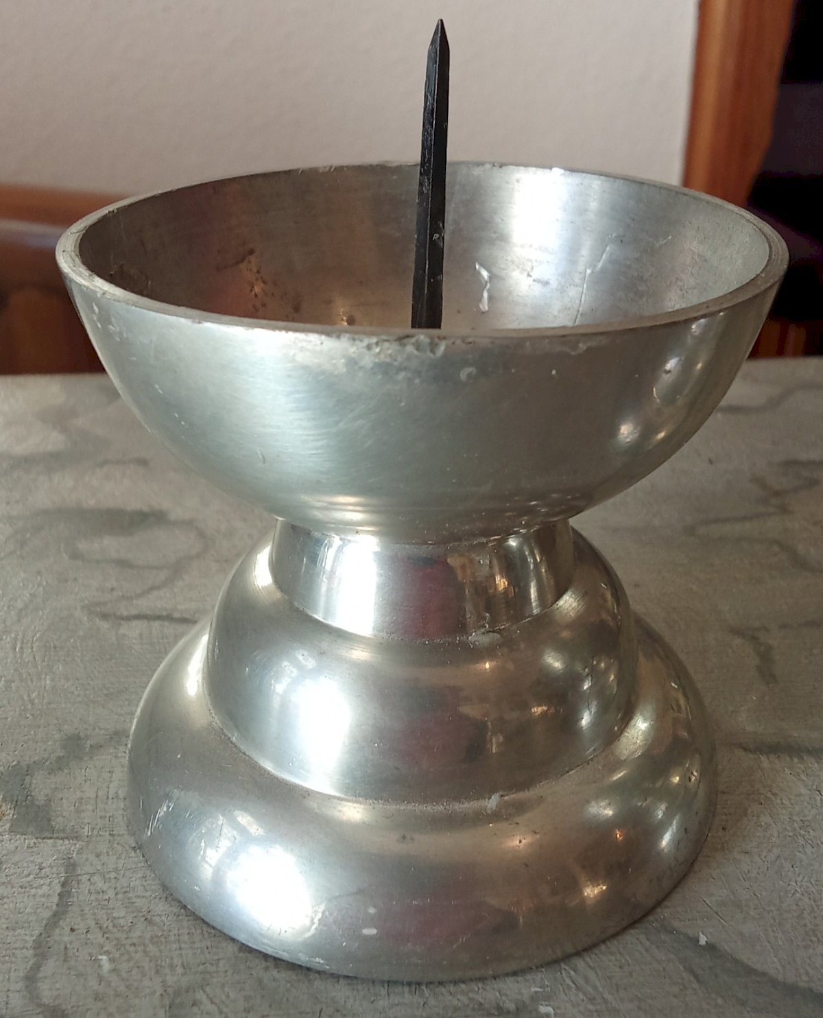 Modernist Candle Holder Pair Metal Good condition Stamps Height without spike 6.6 cm Base diameter 7.5 cm