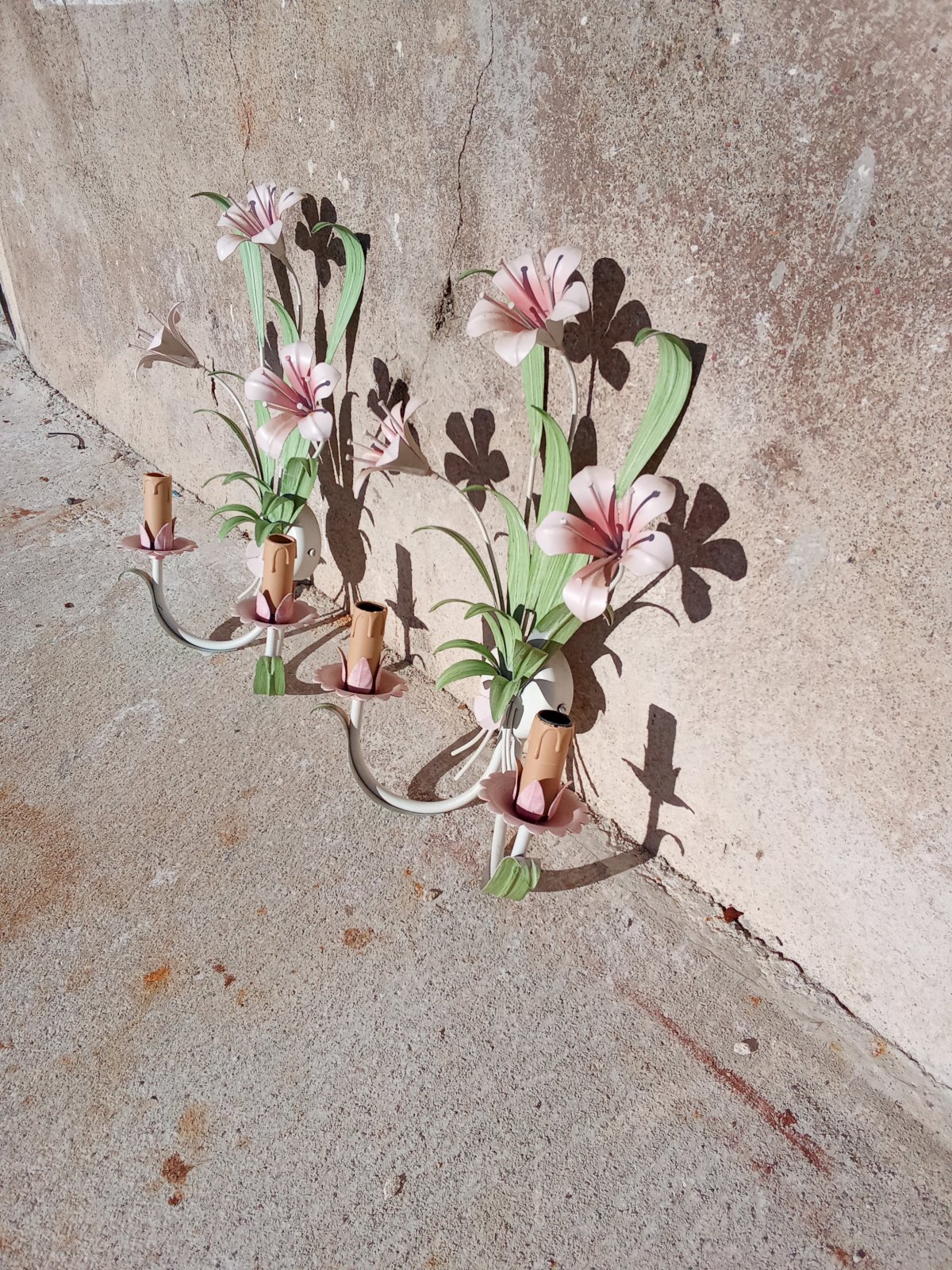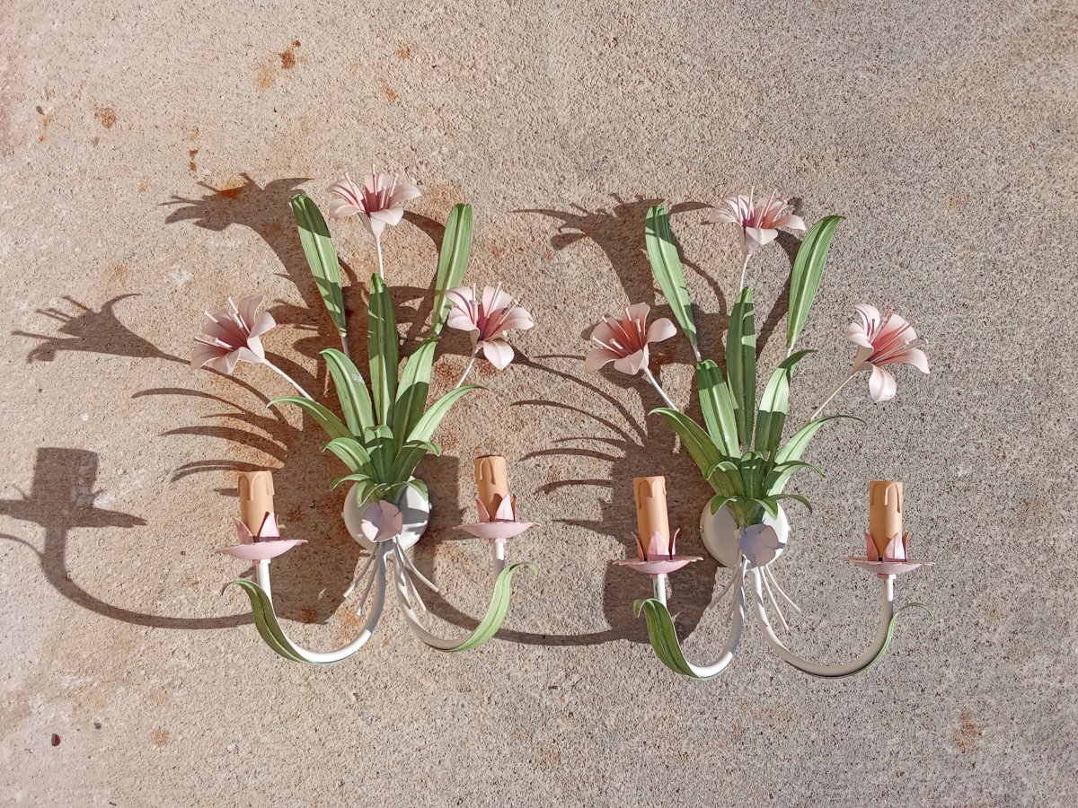 Pair of wall sconces with plant decoration Vintage Metal Floral,Vegetal
