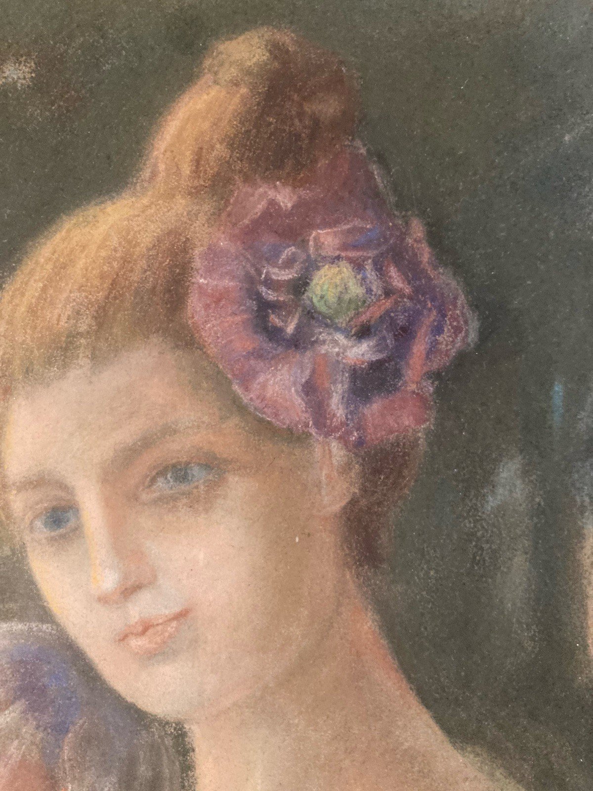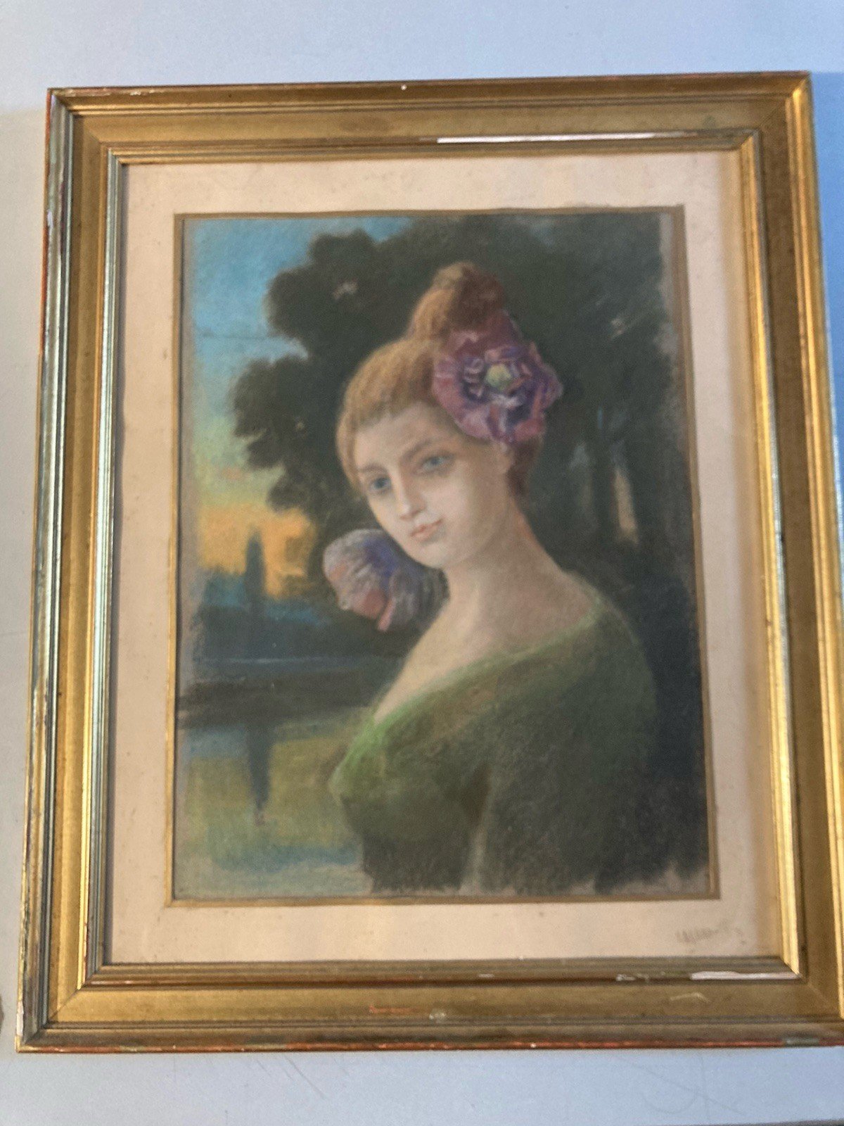 Pastel large portrait woman Fauvist Bust Art 1950 To Identify Antique